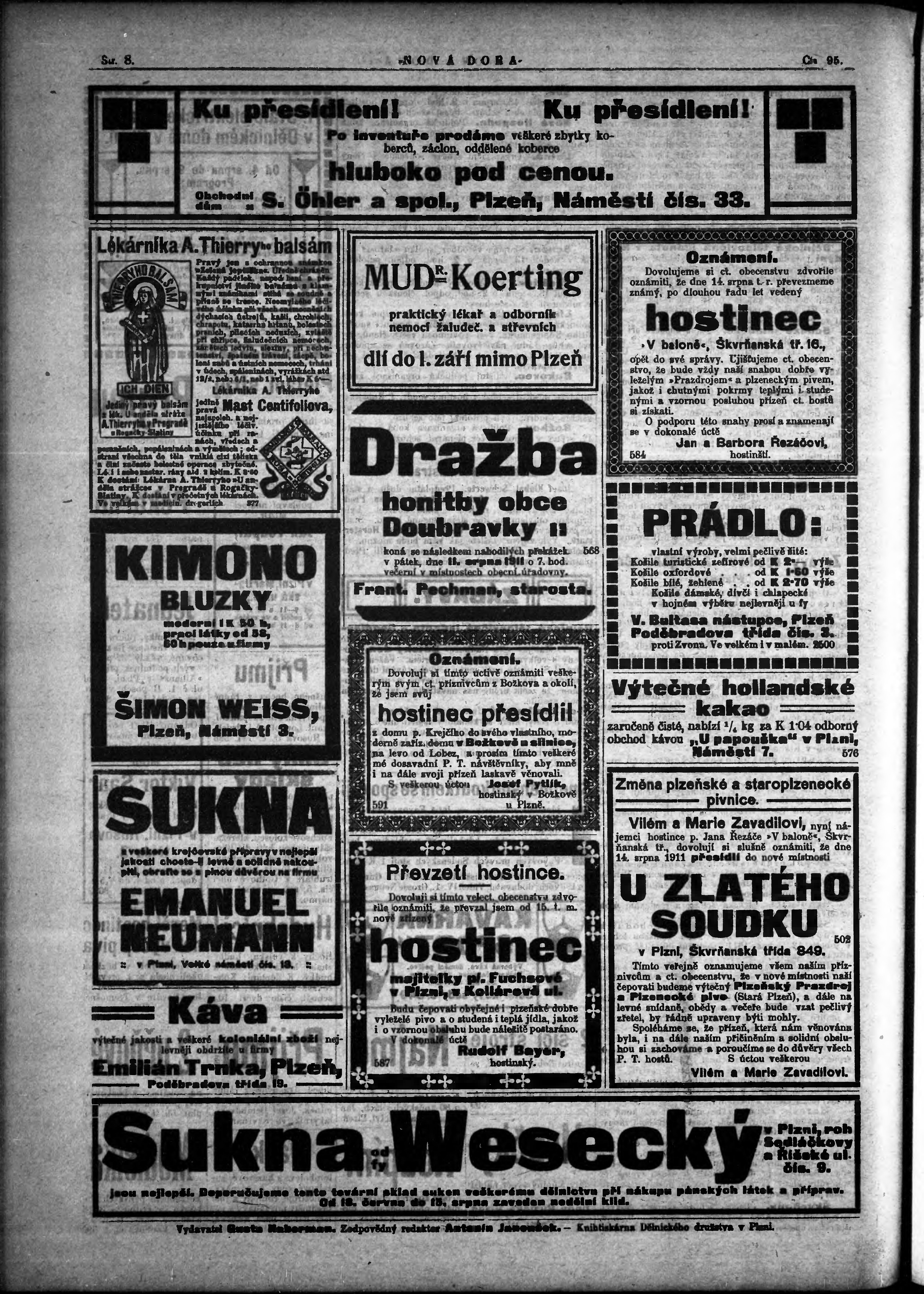 * Datum vydání výtisku: 9.8.1911 Číslo výtisku: 95