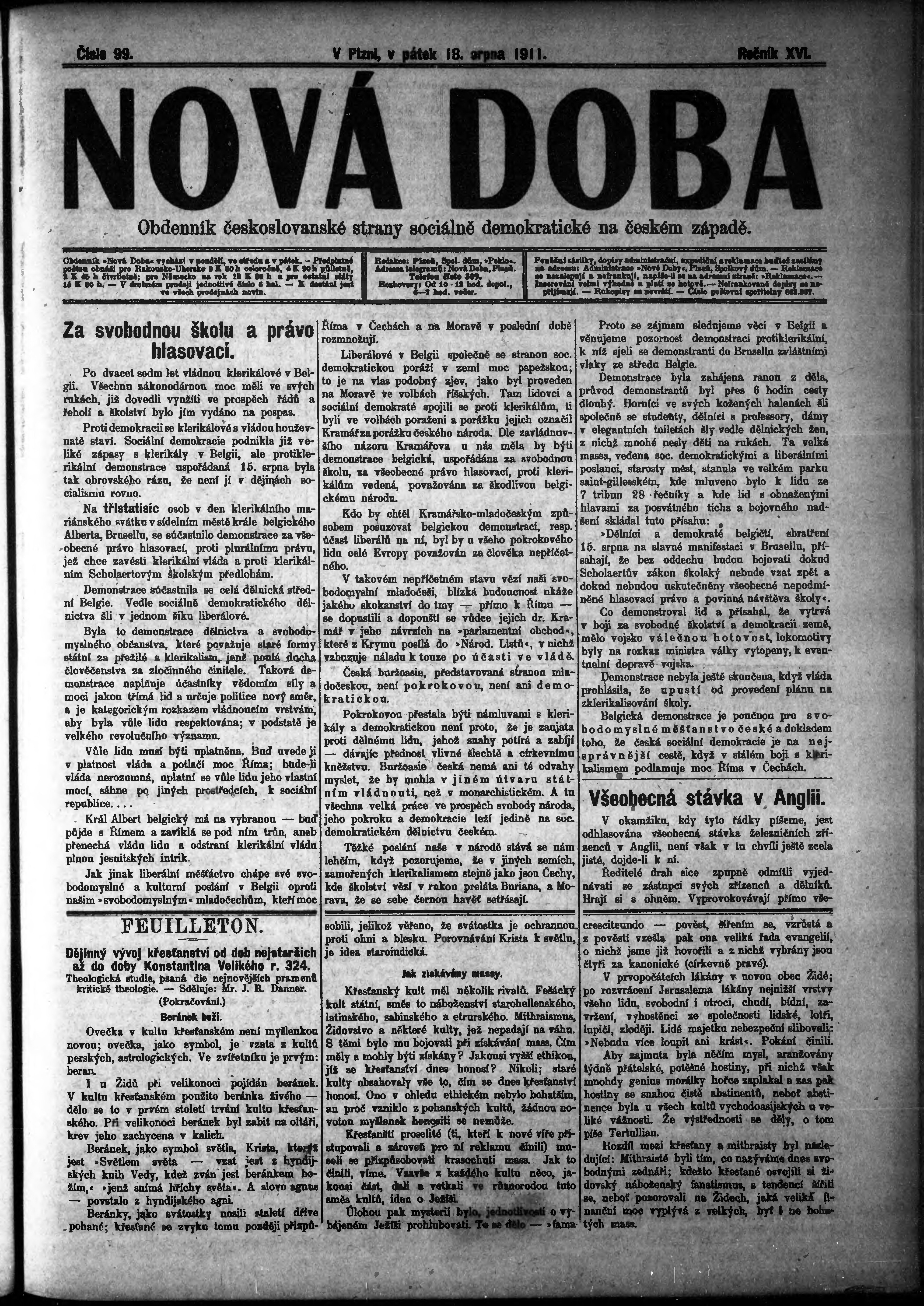 * Datum vydání výtisku: 18.8.1911 Číslo výtisku: 99