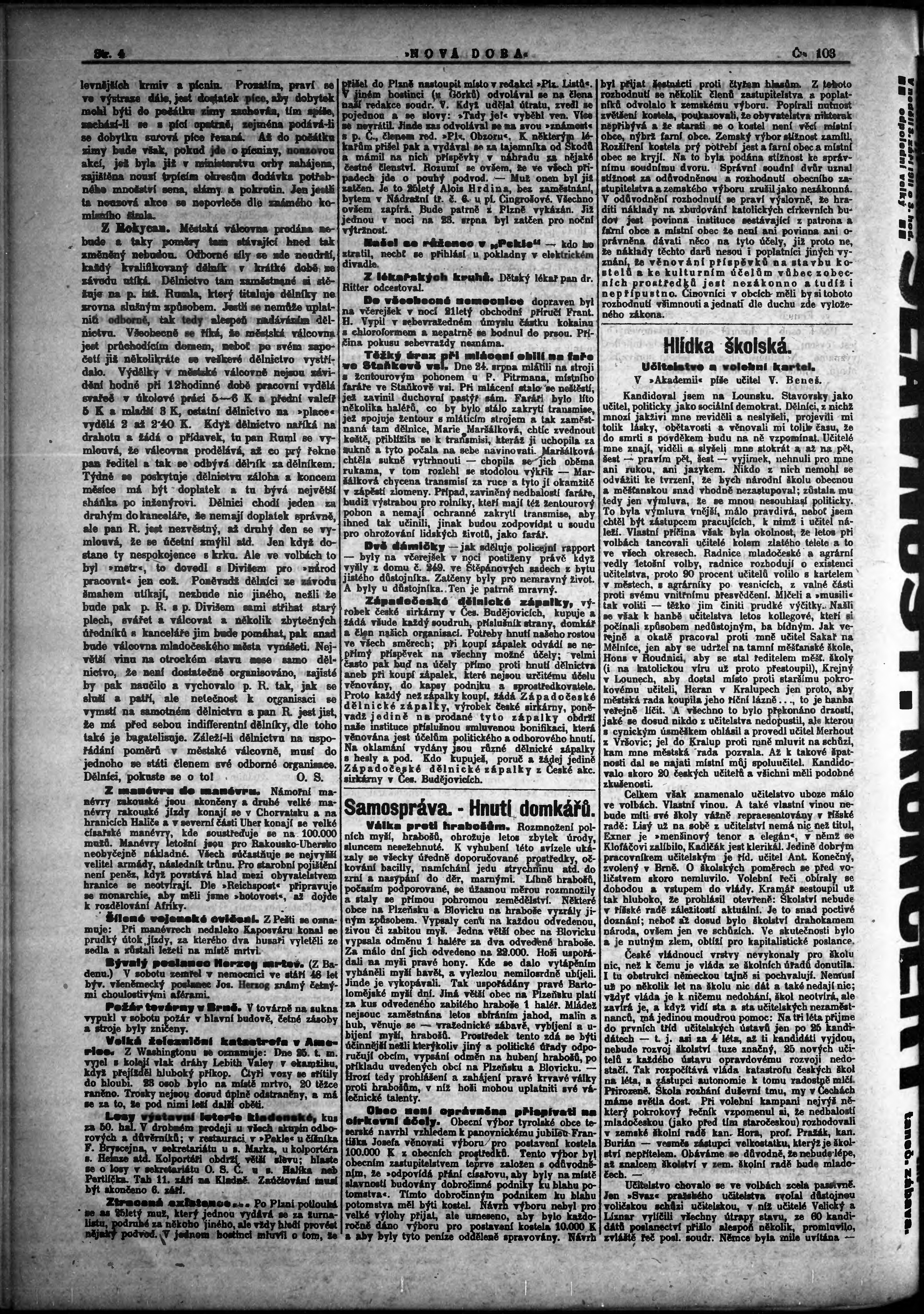 * Datum vydání výtisku: 28.8.1911 Číslo výtisku: 103