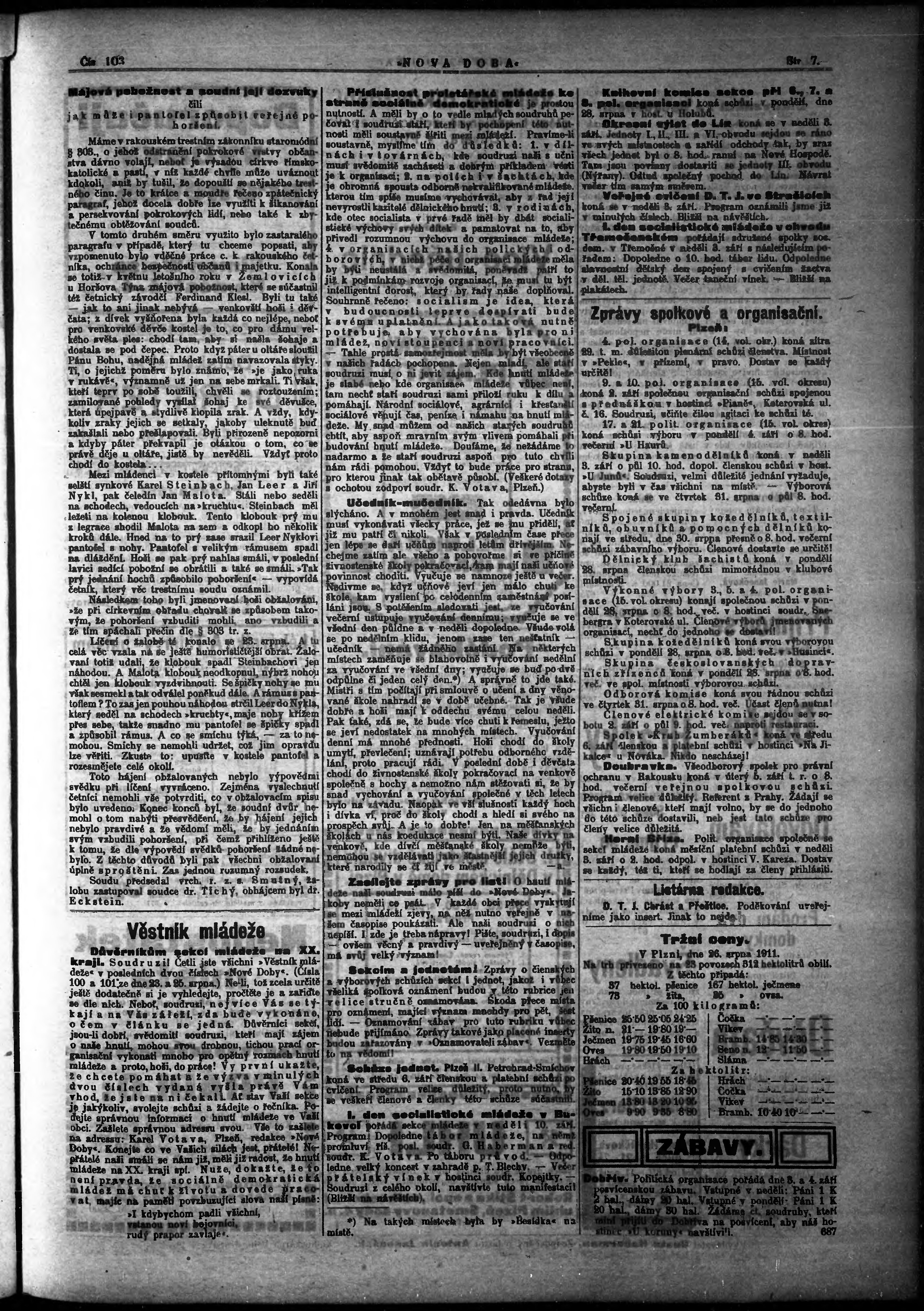 * Datum vydání výtisku: 28.8.1911 Číslo výtisku: 103