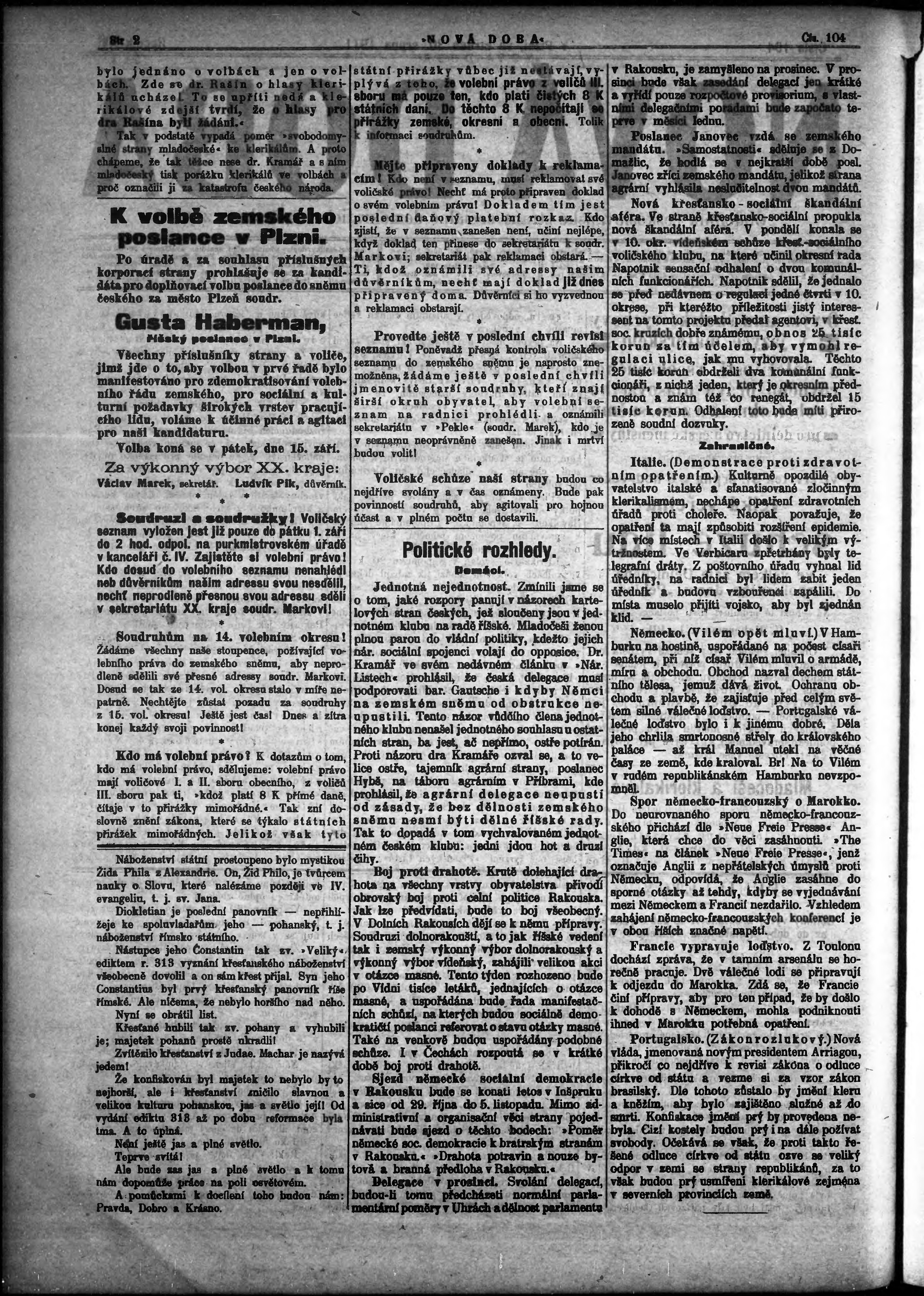 * Datum vydání výtisku: 30.8.1911 Číslo výtisku: 104