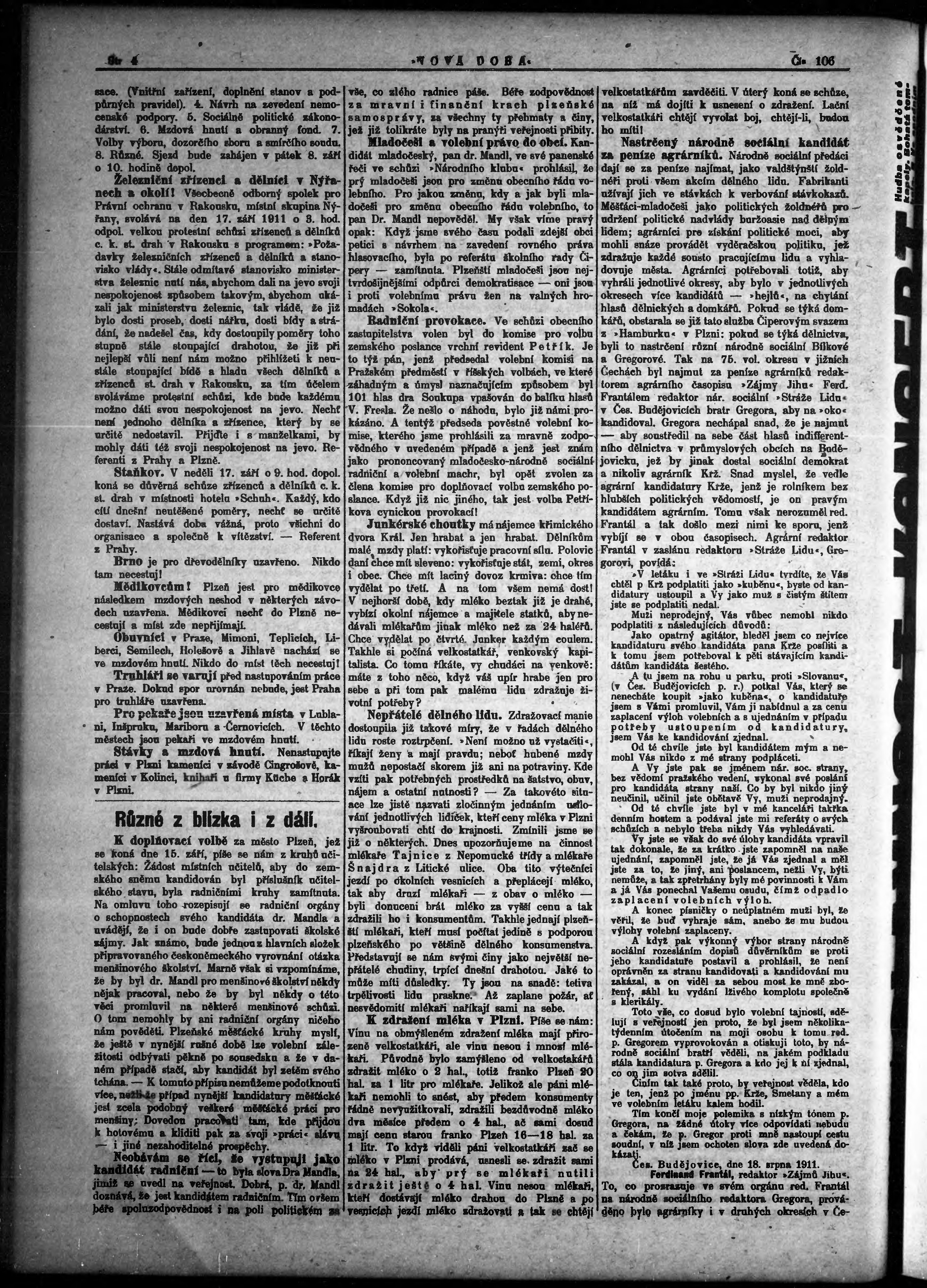 * Datum vydání výtisku: 4.9.1911 Číslo výtisku: 106