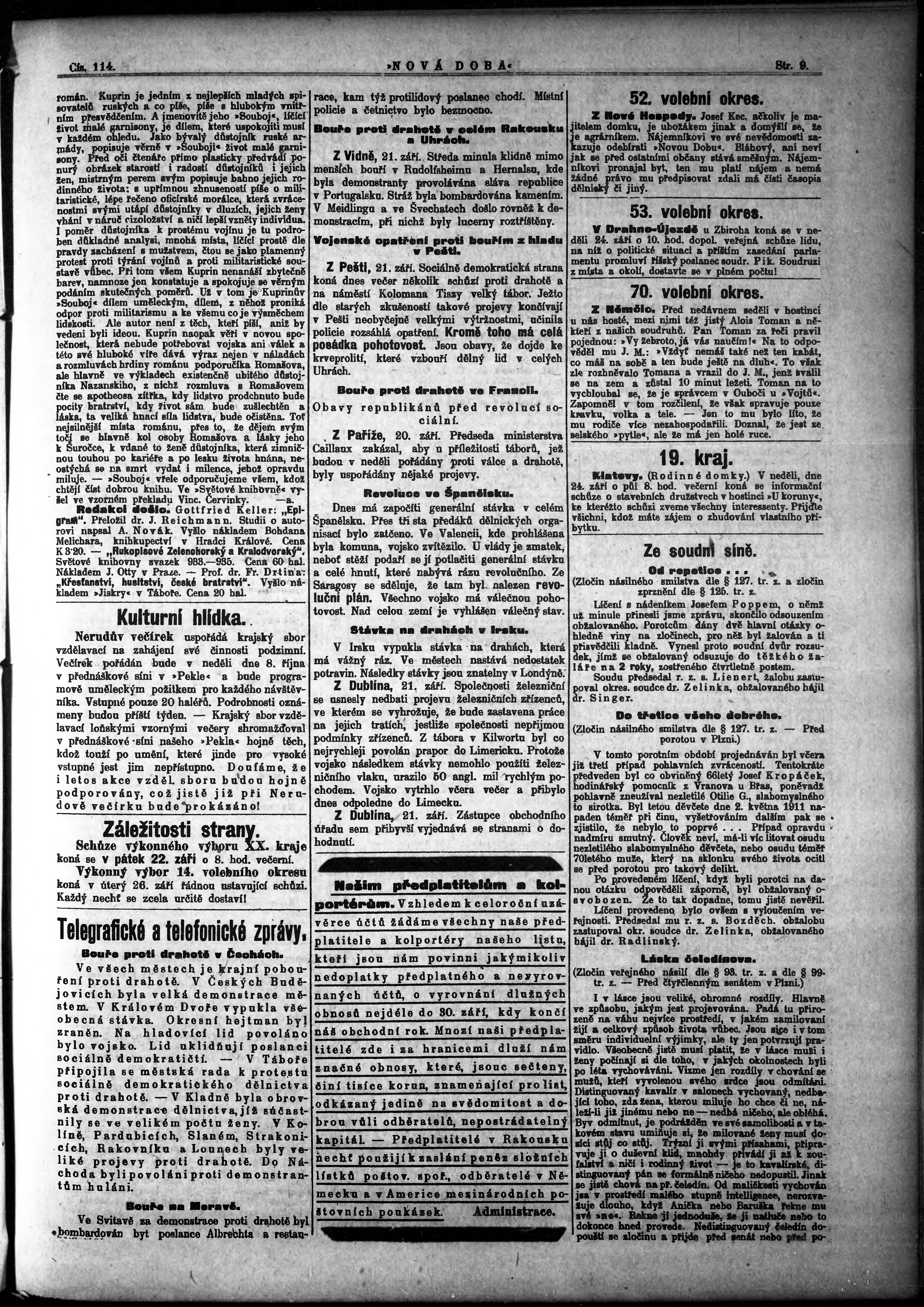 * Datum vydání výtisku: 22.9.1911 Číslo výtisku: 114