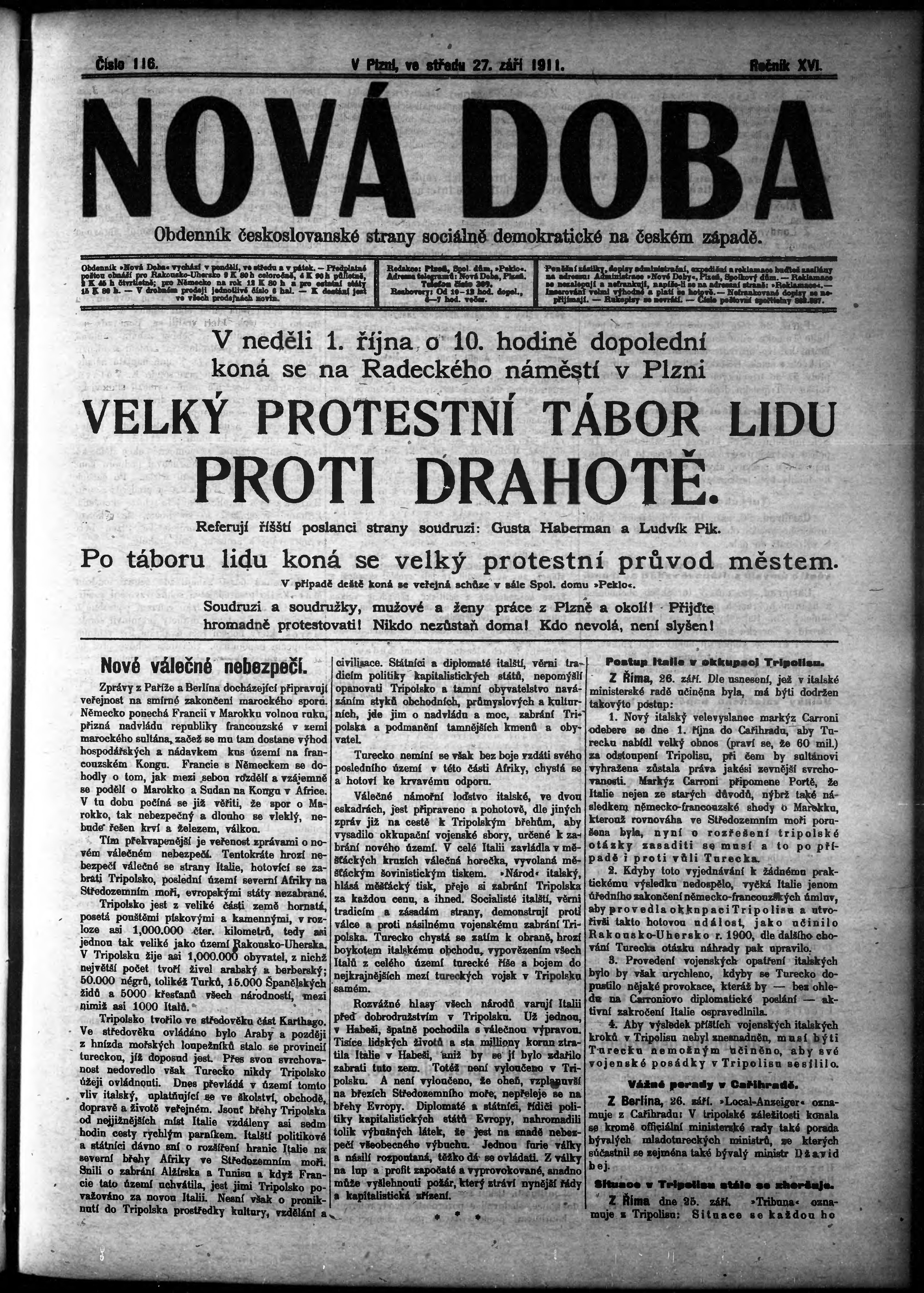 * Datum vydání výtisku: 27.9.1911 Číslo výtisku: 116