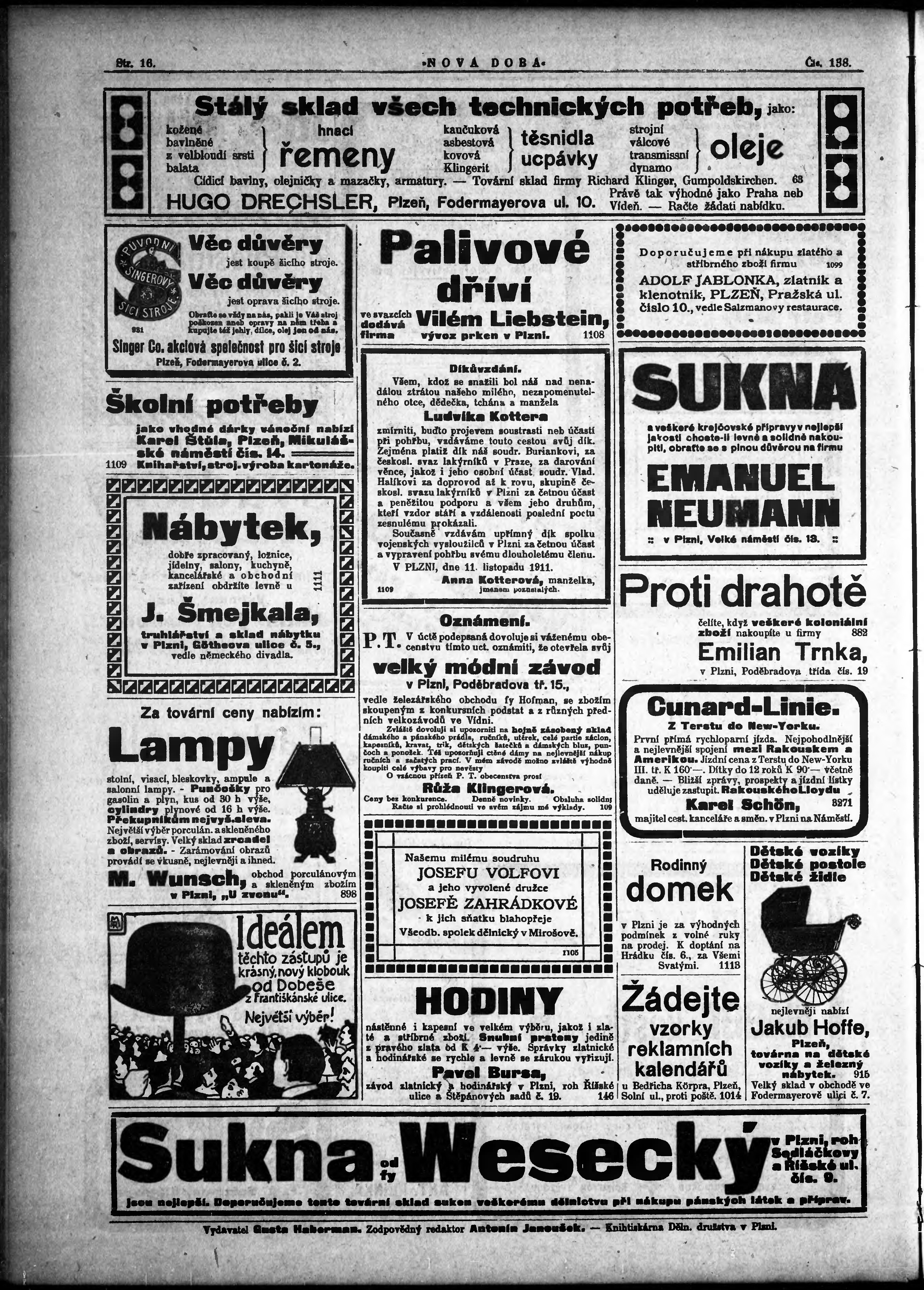 * Datum vydání výtisku: 17.11.1911 Číslo výtisku: 138