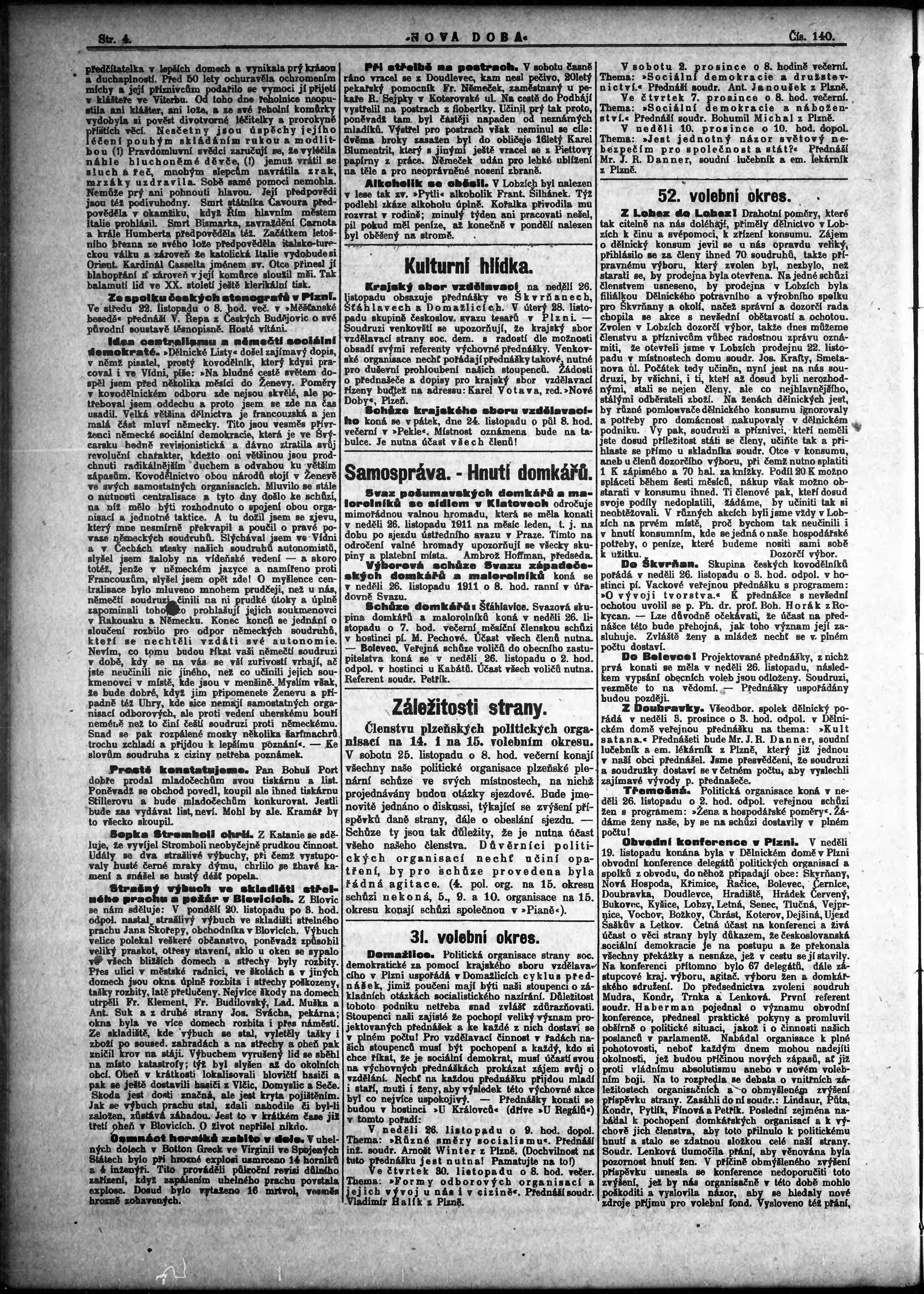 * Datum vydání výtisku: 22.11.1911 Číslo výtisku: 140 Poznámky k výtisku: po konfiskaci nové vydání;
