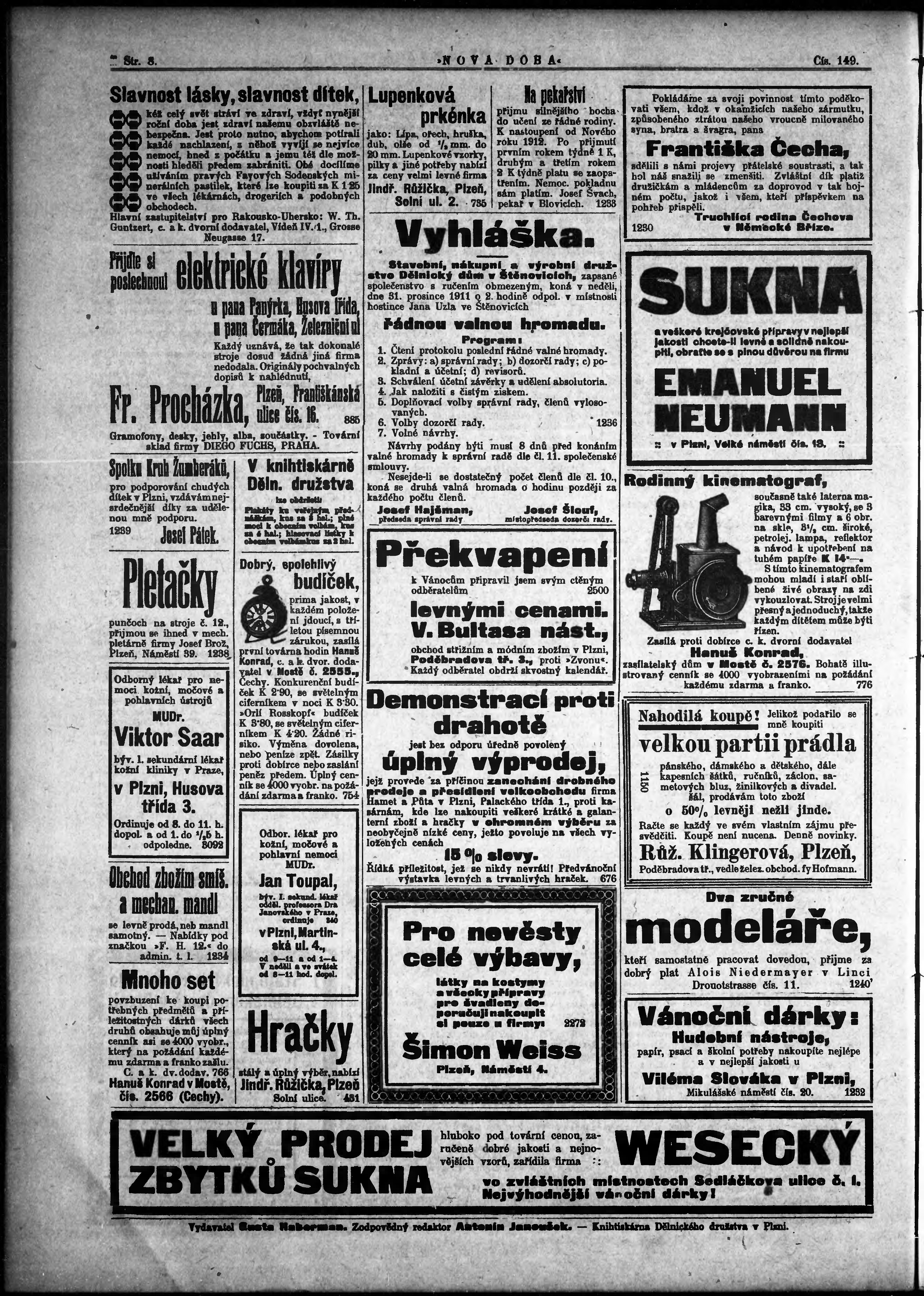 * Datum vydání výtisku: 13.12.1911 Číslo výtisku: 149