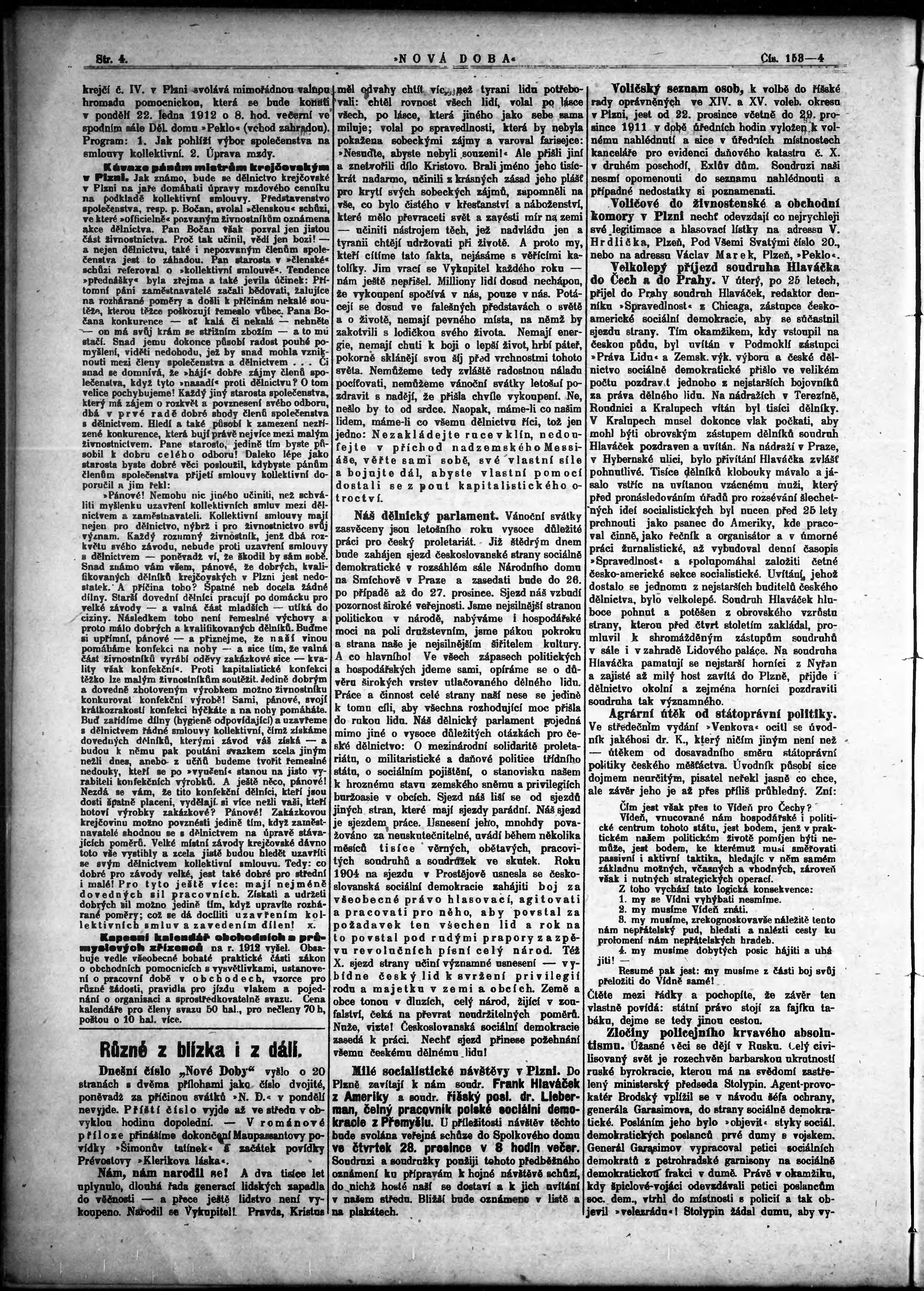 * Datum vydání výtisku: 22.12.1911 Číslo výtisku: 153 - 154