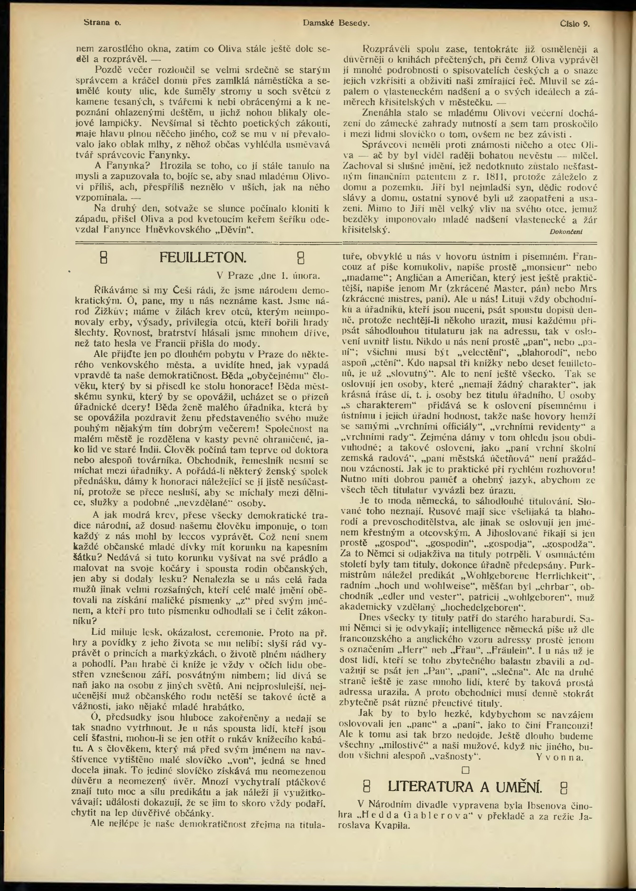 * Datum vydání výtisku: 1.2.1911 Číslo výtisku: 9 Typ výtisku: příloha Poznámky k výtisku: belletristická příloha;