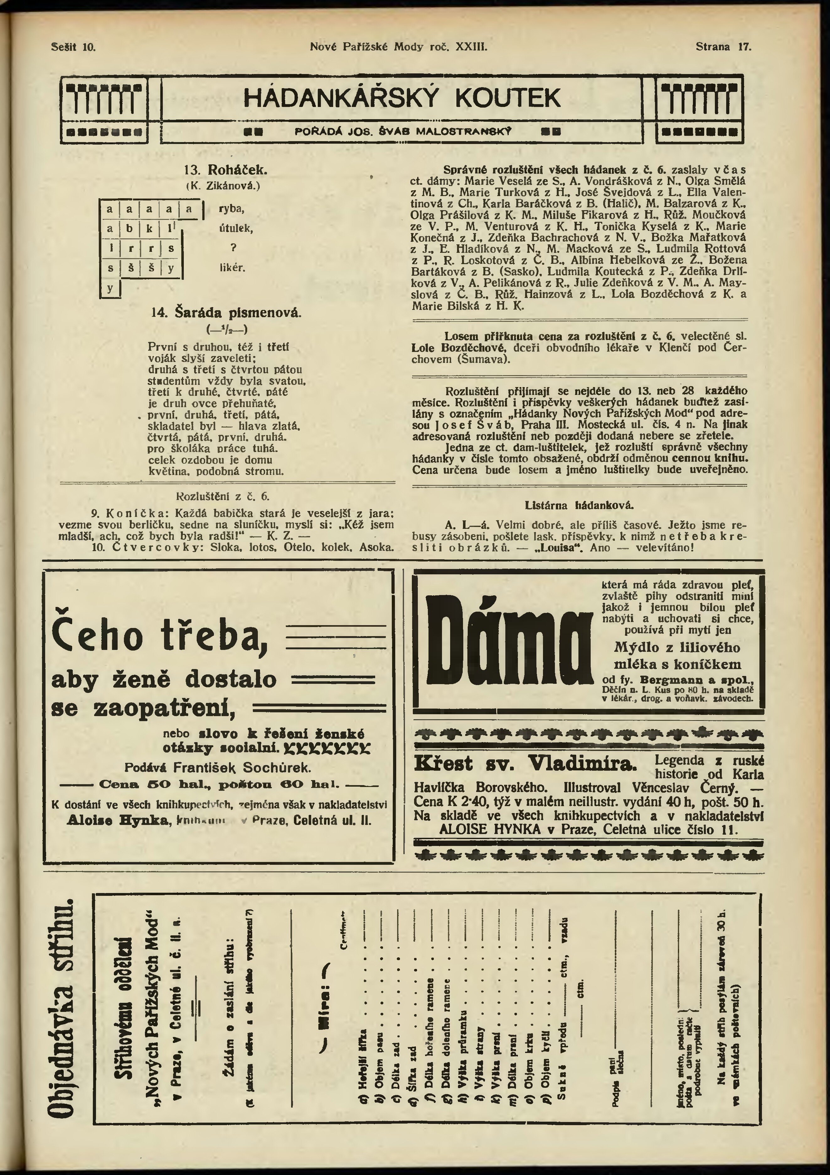 Poznámky k výtisku: belletristická příloha; nekonzistence číslování stran;