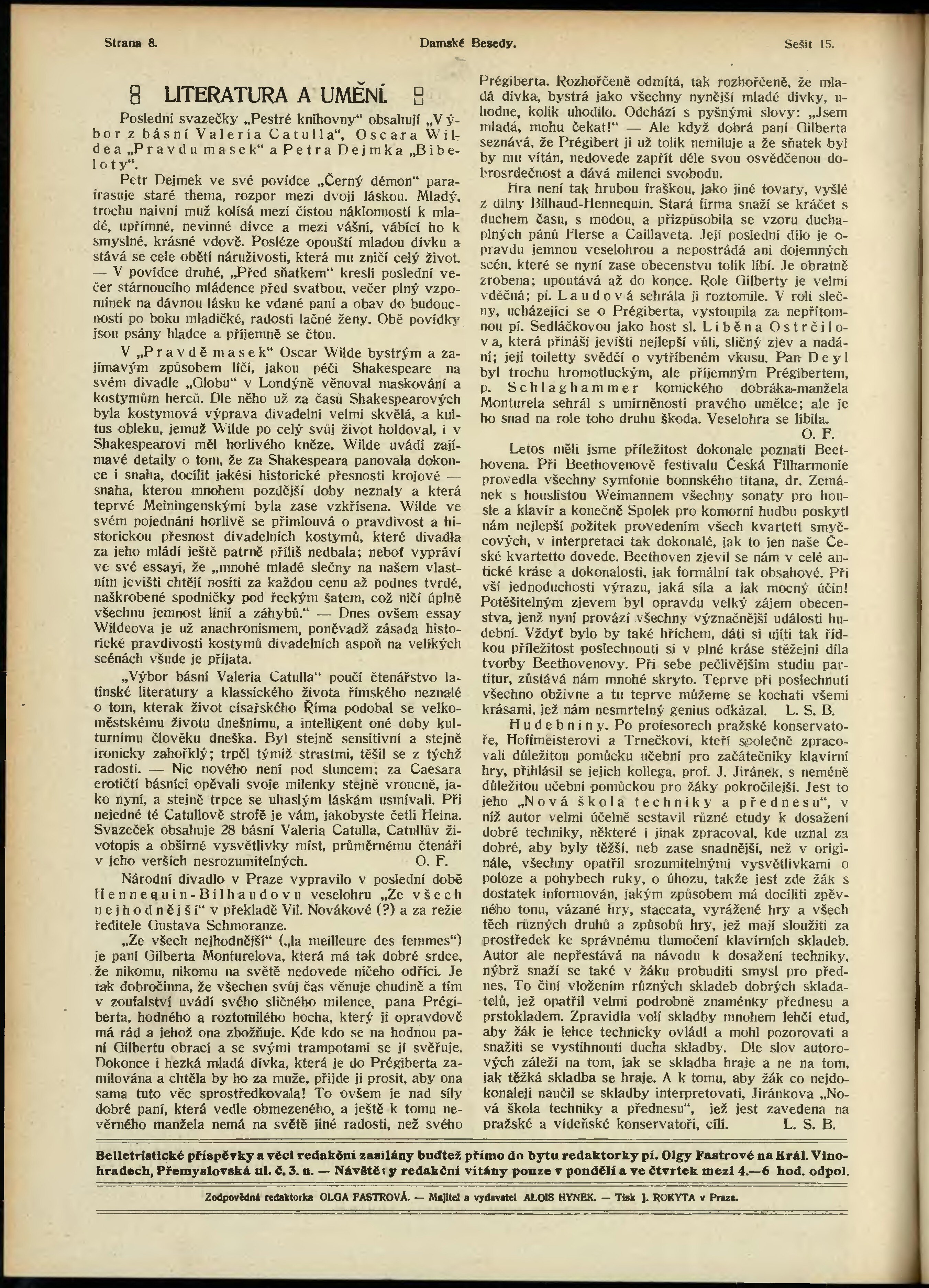 * Datum vydání výtisku: 1.5.1911 Číslo výtisku: 15 Typ výtisku: příloha Poznámky k výtisku: belletristická příloha;