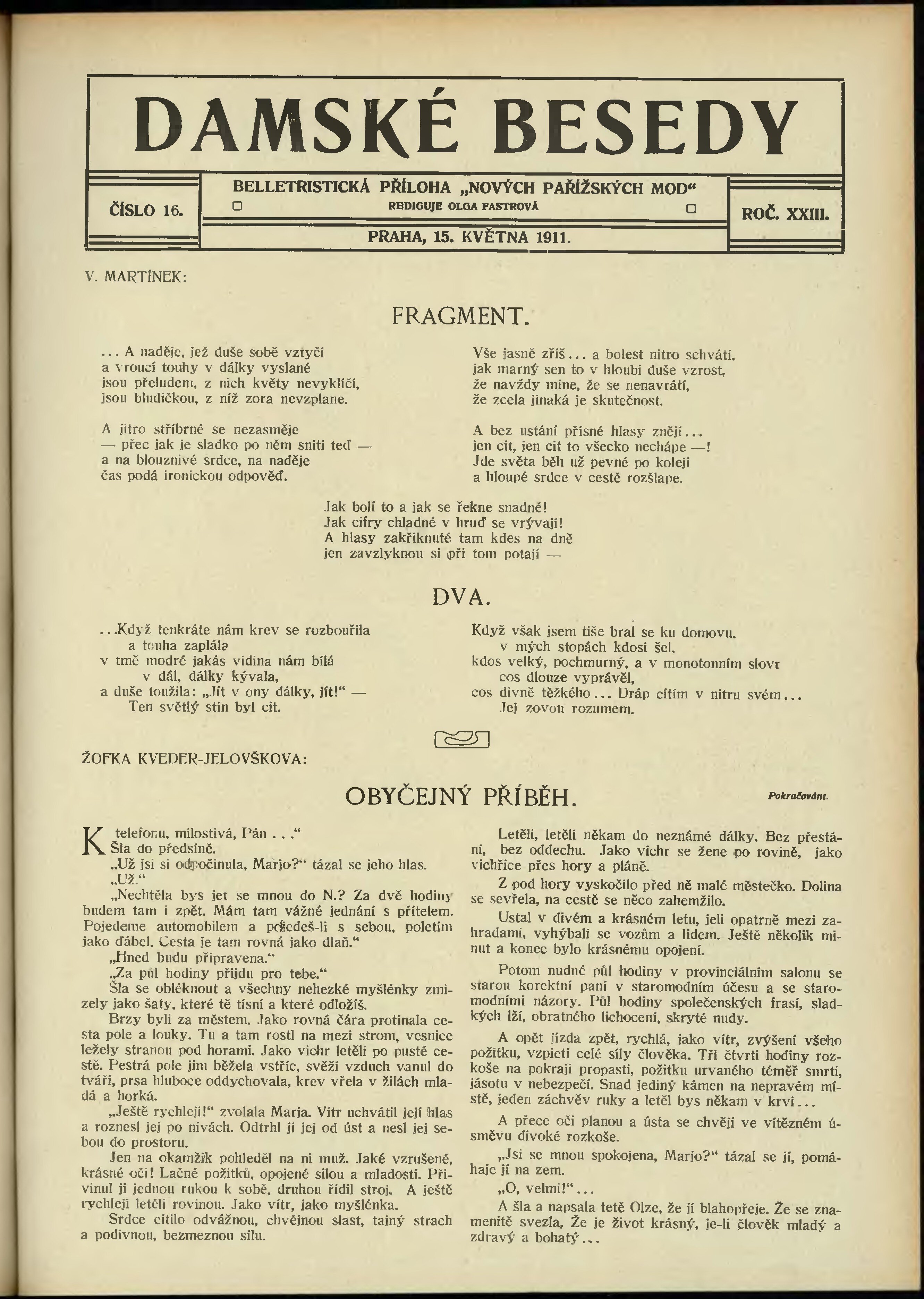 * Datum vydání výtisku: 15.5.1911 Číslo výtisku: 16 Typ výtisku: příloha Poznámky k výtisku: belletristická příloha;