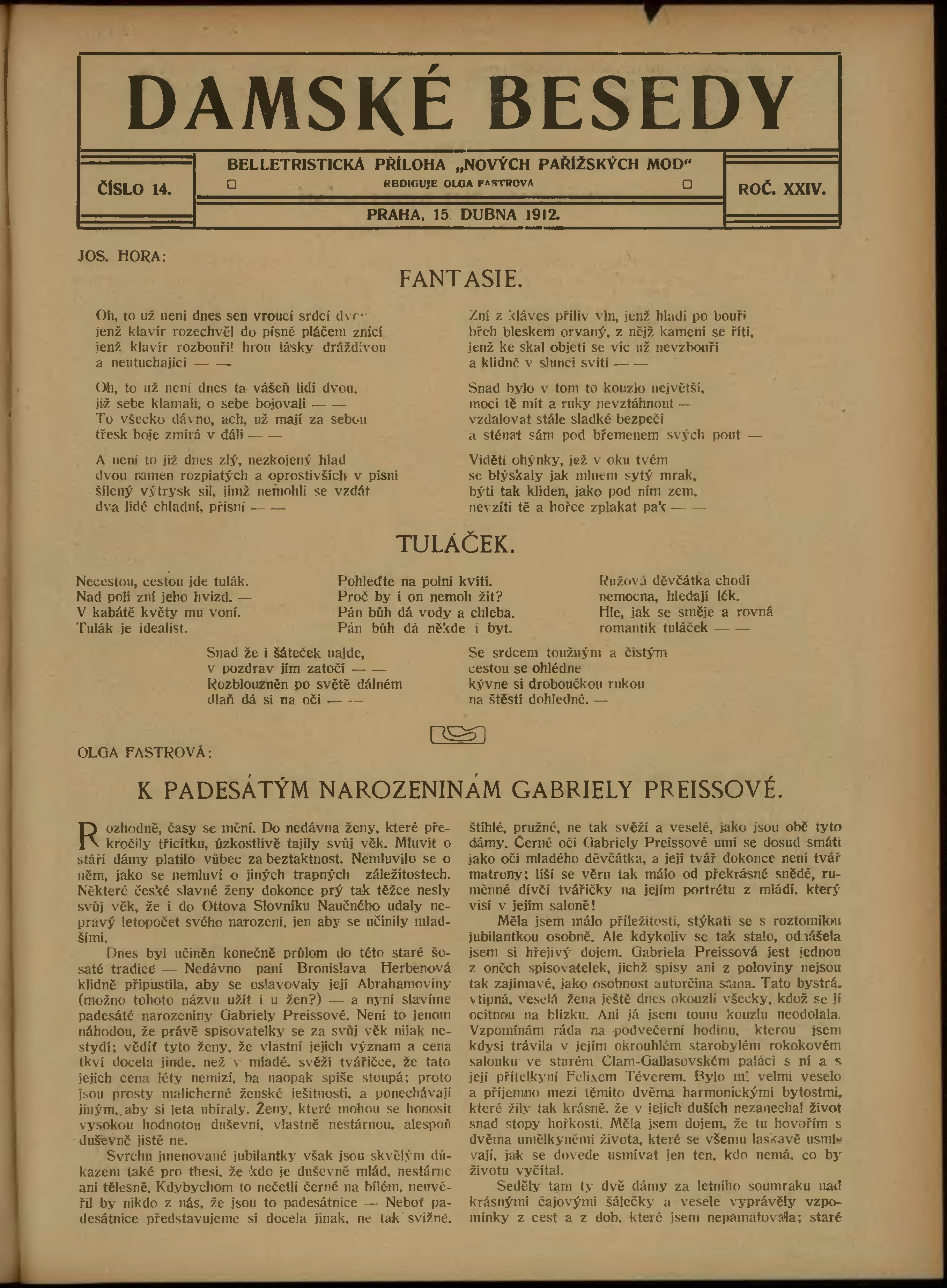 Poznámky k výtisku: belletristická příloha;
