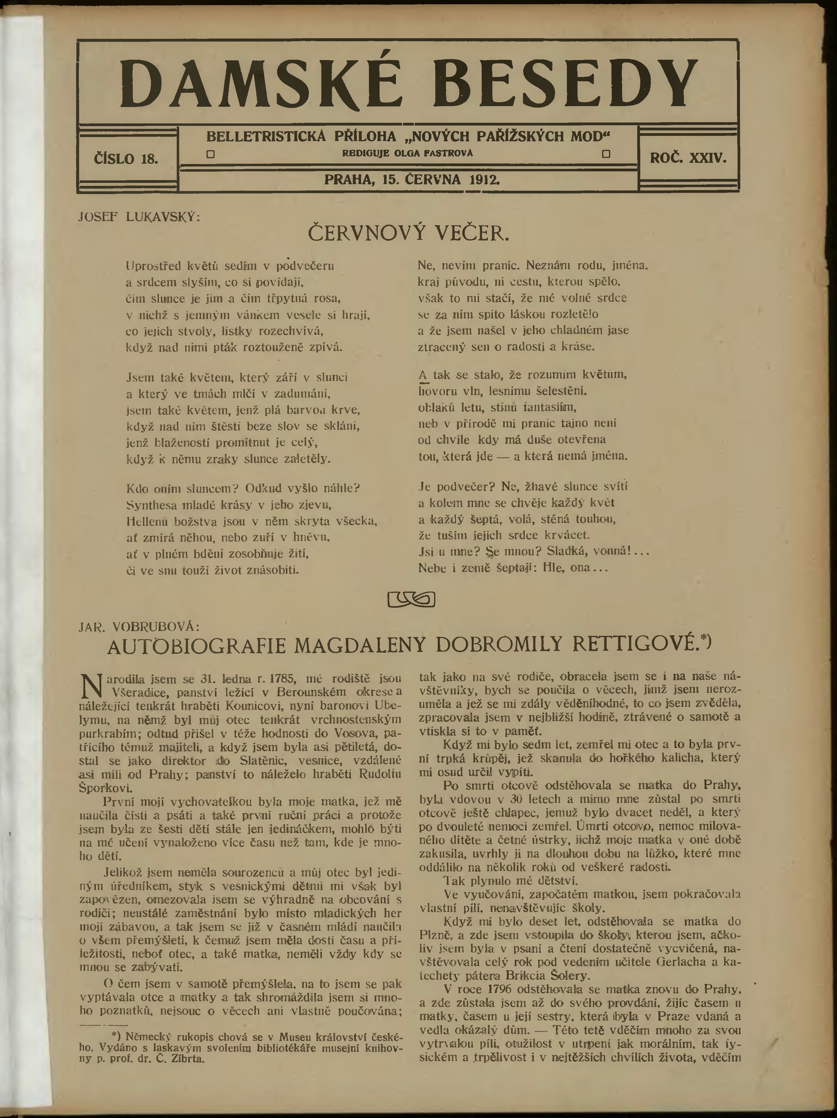 Poznámky k výtisku: belletristická příloha;