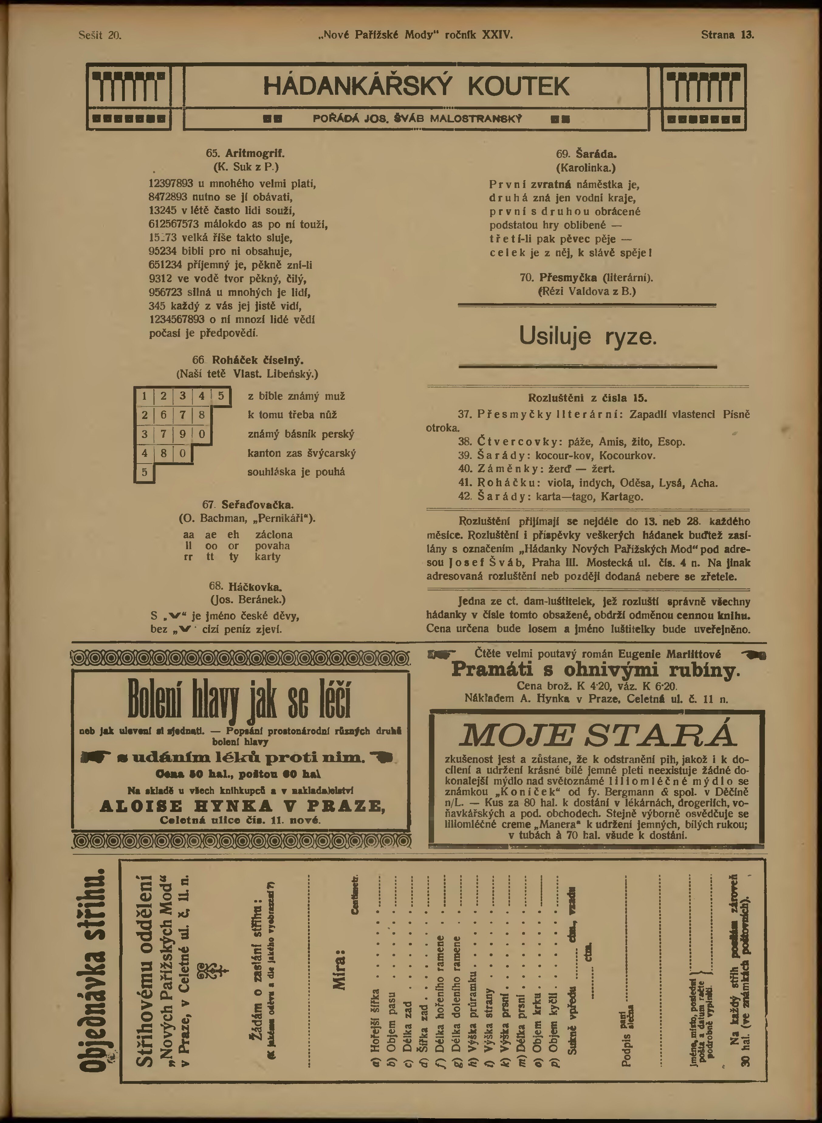 * Datum vydání výtisku: 15.7.1912 Číslo výtisku: 20 Typ výtisku: příloha Poznámky k výtisku: belletristická příloha;