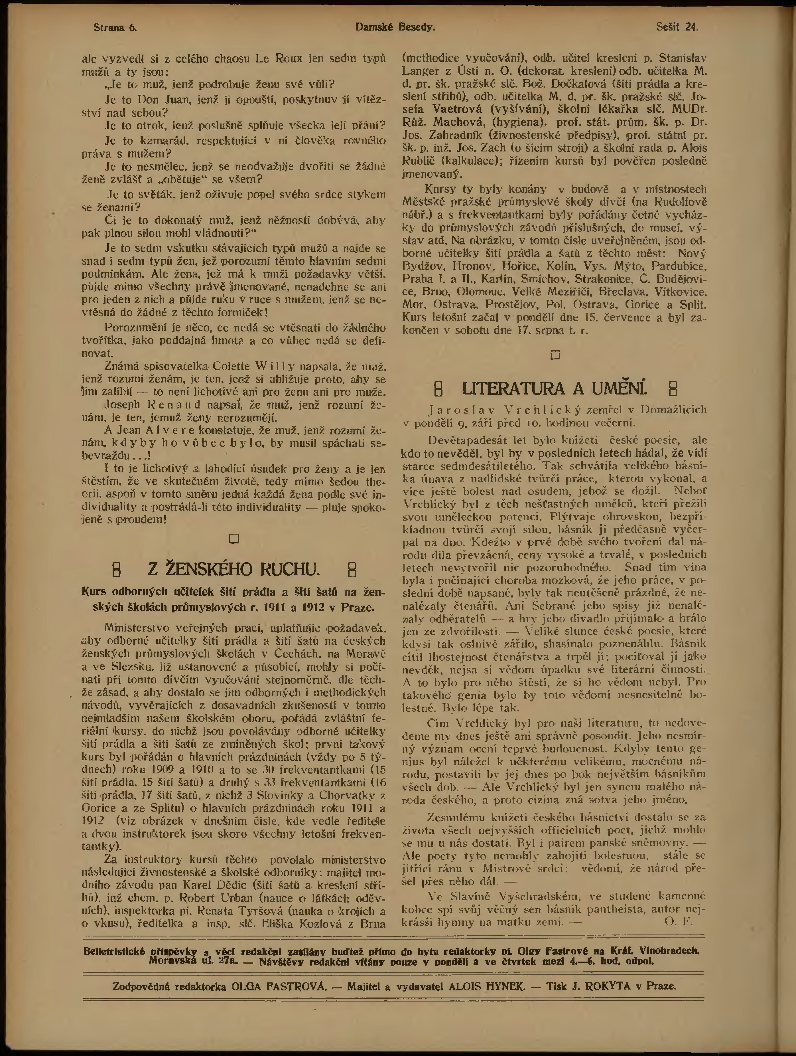 * Datum vydání ročníku: 1911 - 1912 Číslo ročníku: 24
