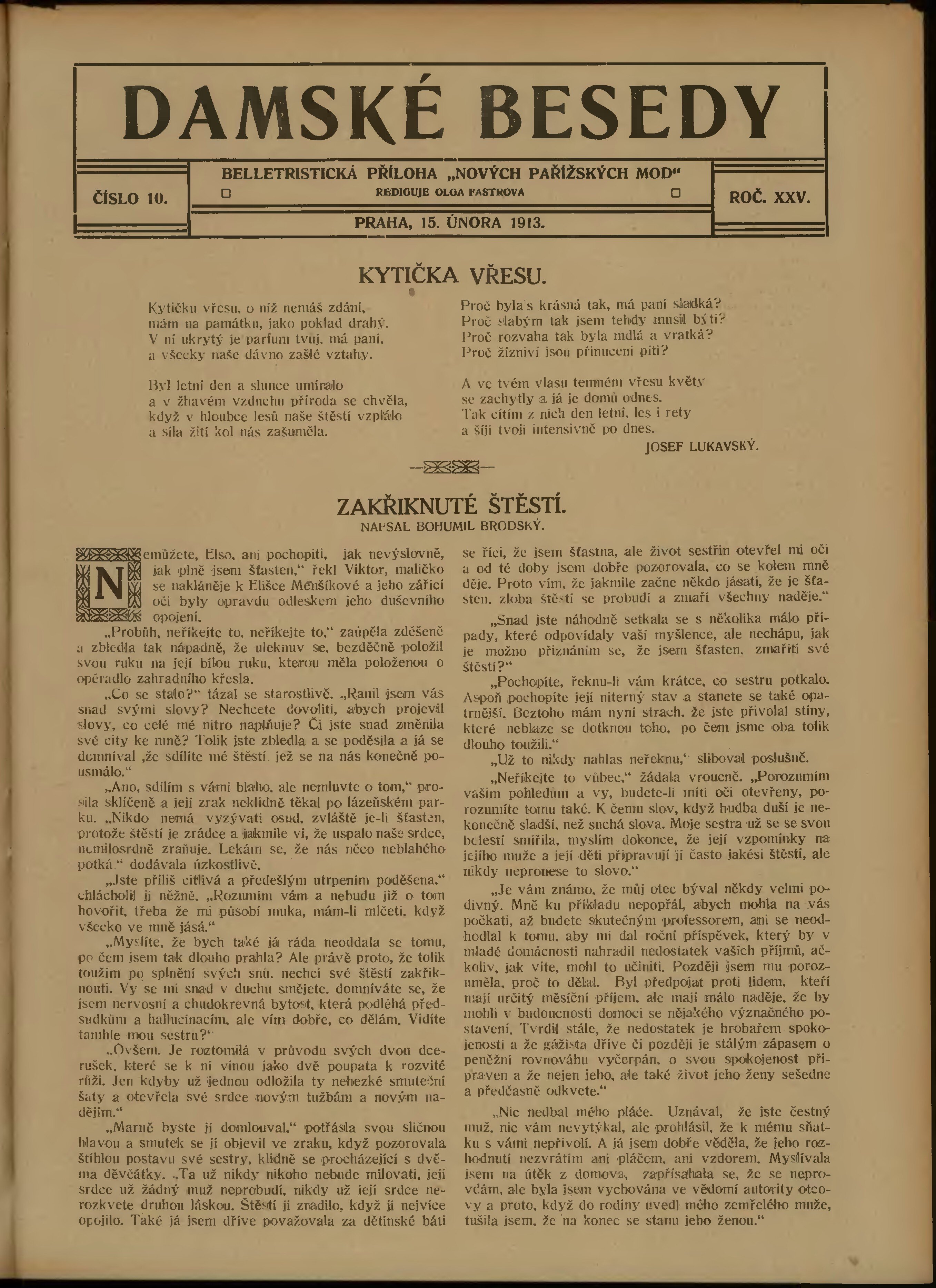 Poznámky k výtisku: belletristická příloha;