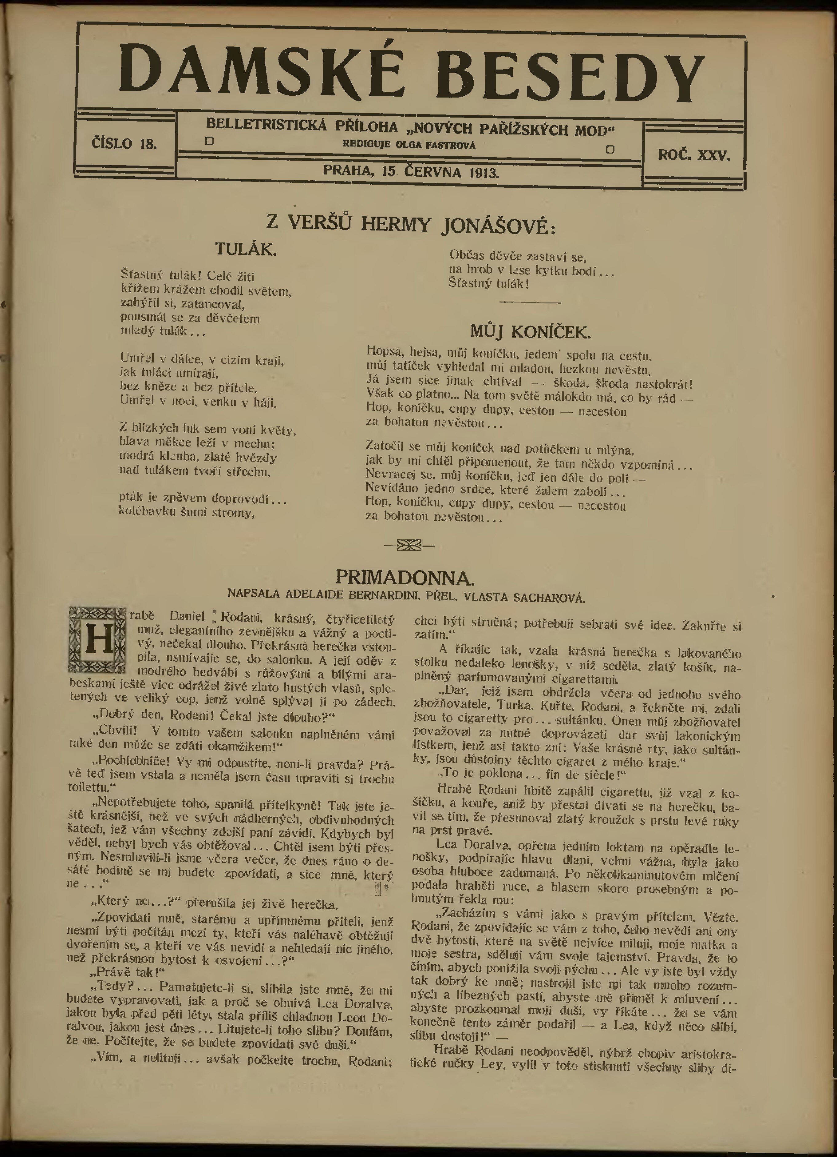 Poznámky k výtisku: belletristická příloha;