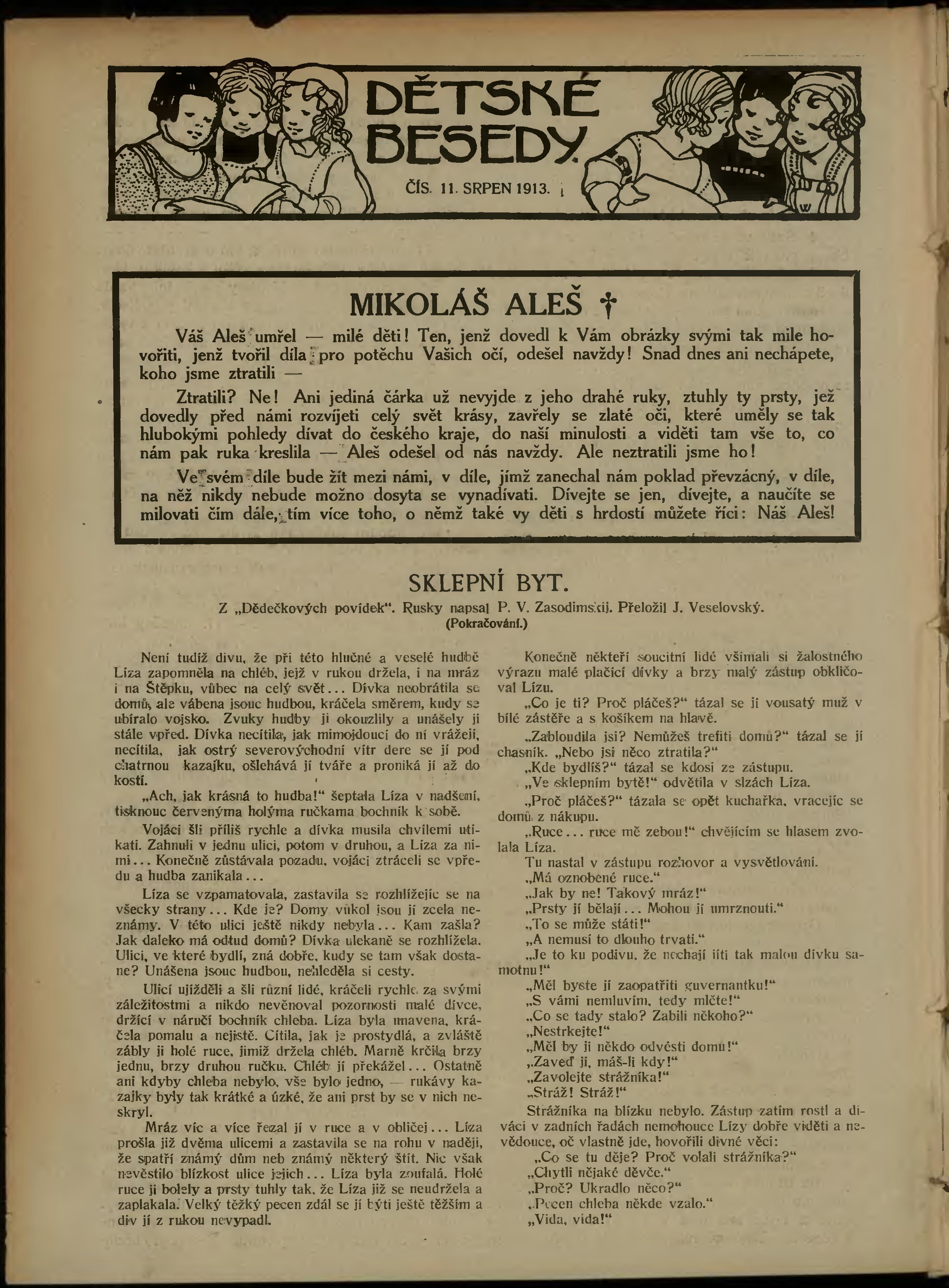 * Datum vydání výtisku: 1.8.1913 Číslo výtisku: 11 Typ výtisku: příloha