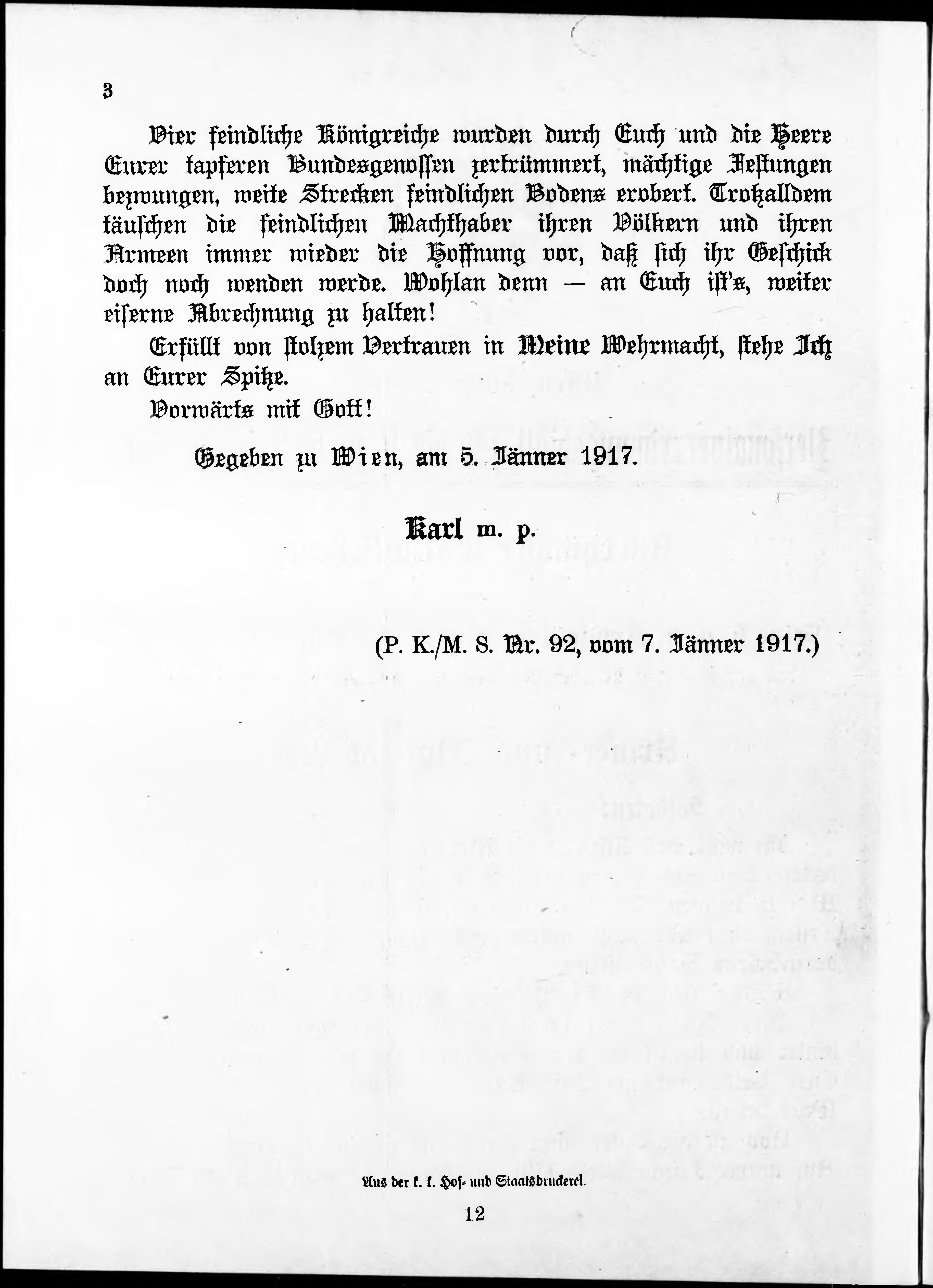 * Datum vydání výtisku: 8.1.1917 Číslo výtisku: 3