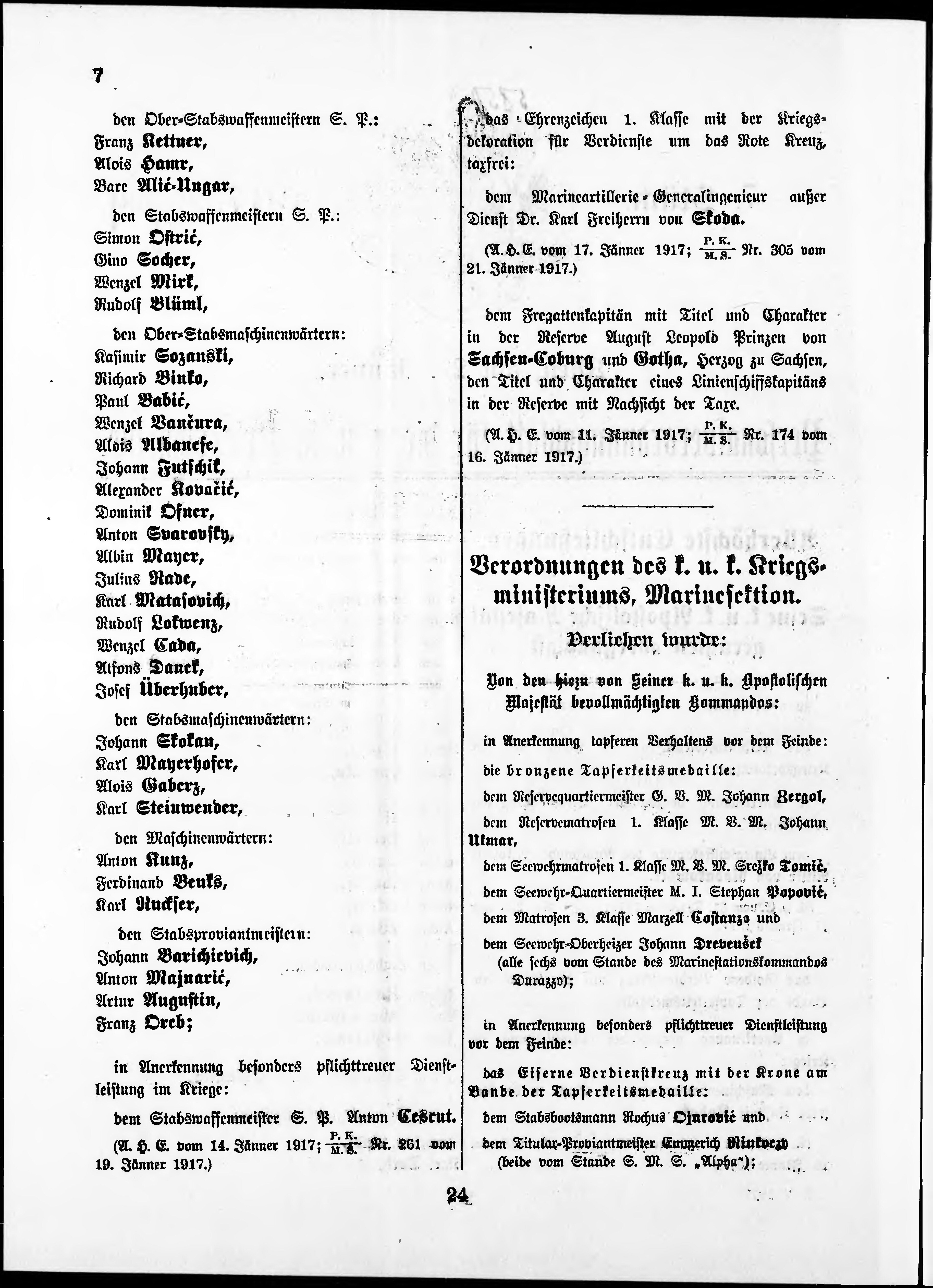 Personalvernungsblatt für die k.k. Kreigs-Marine