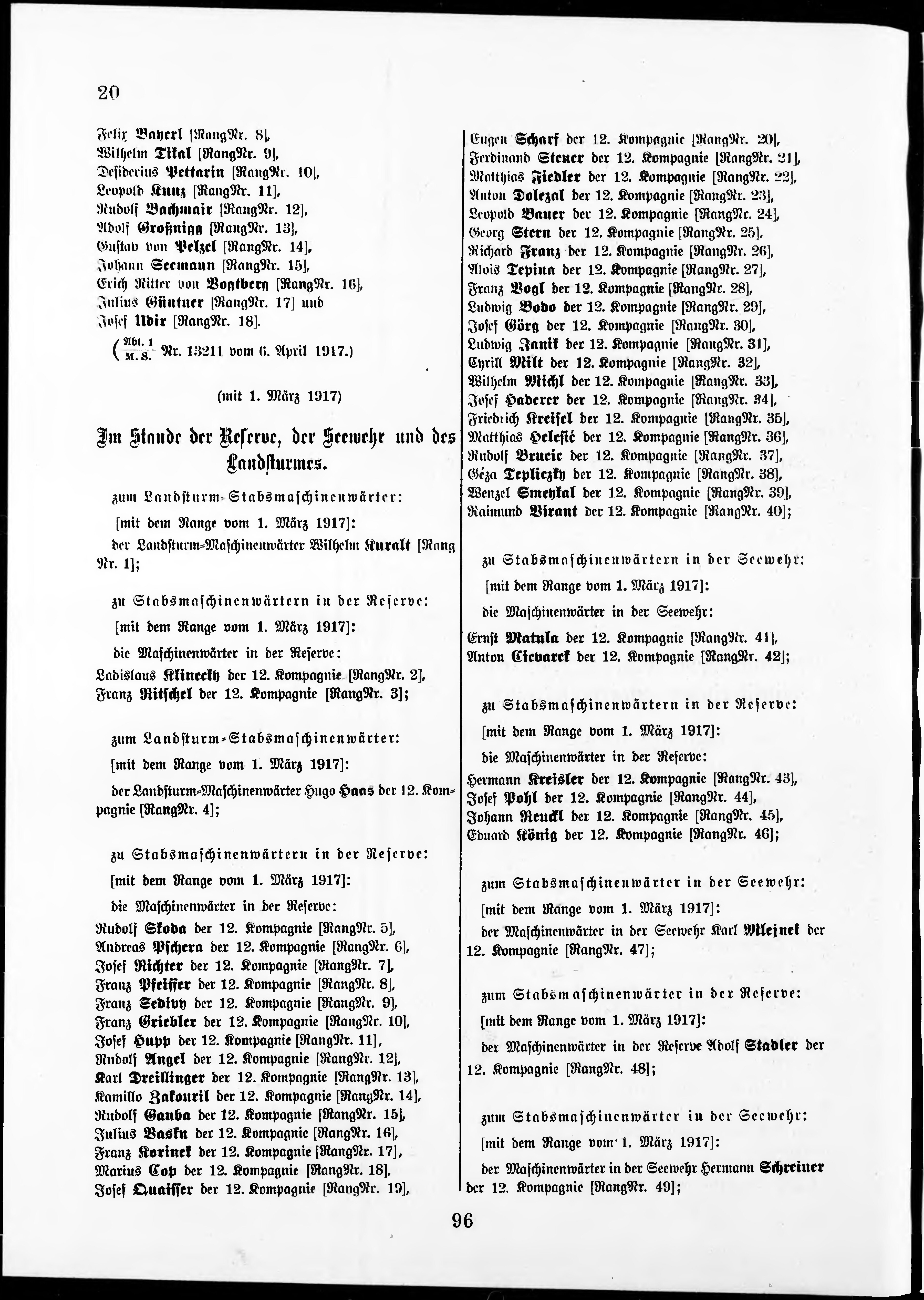 Personalvernungsblatt für die k.k. Kreigs-Marine
