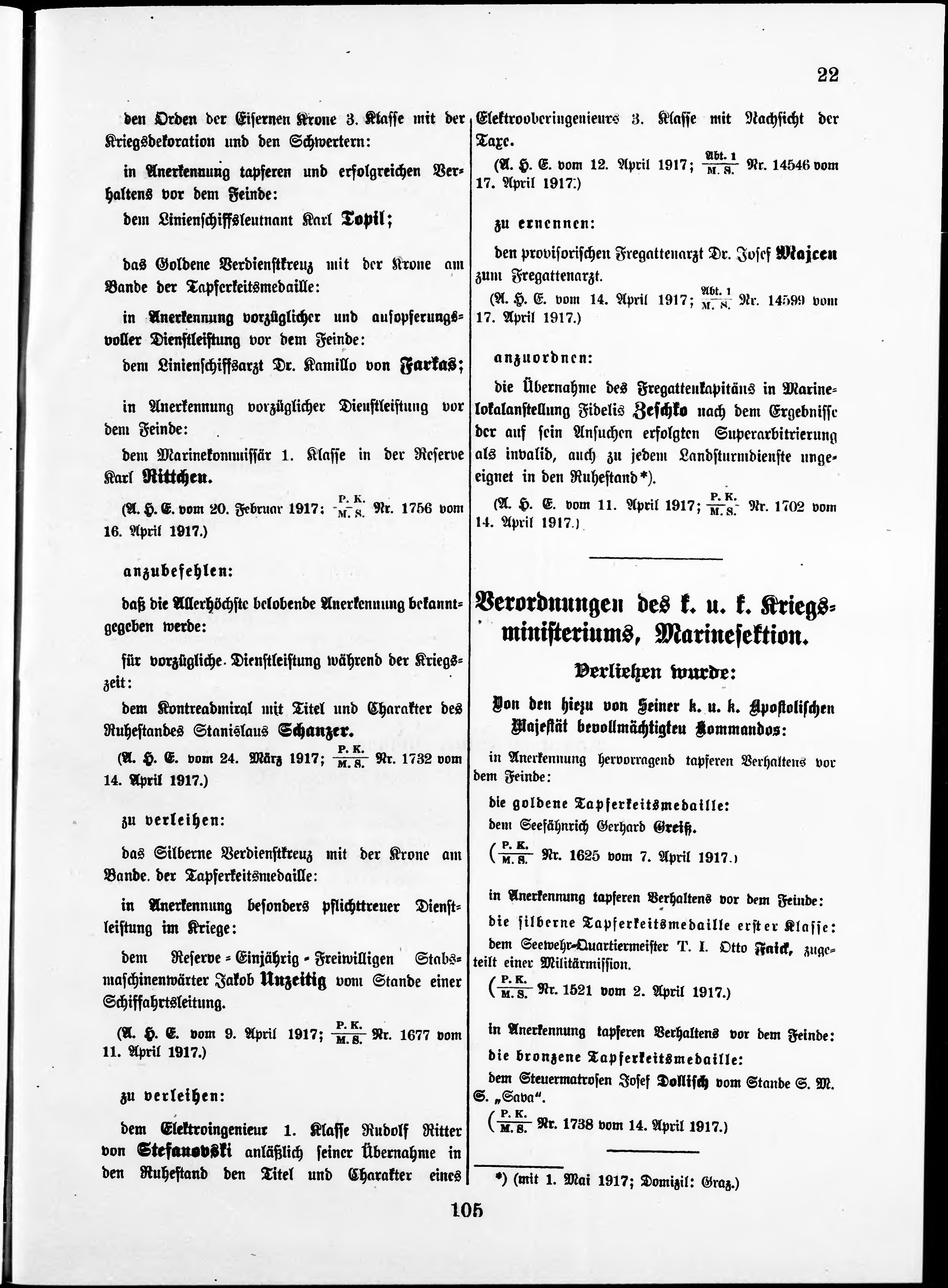 * Datum vydání výtisku: 21.4.1917 Číslo výtisku: 22