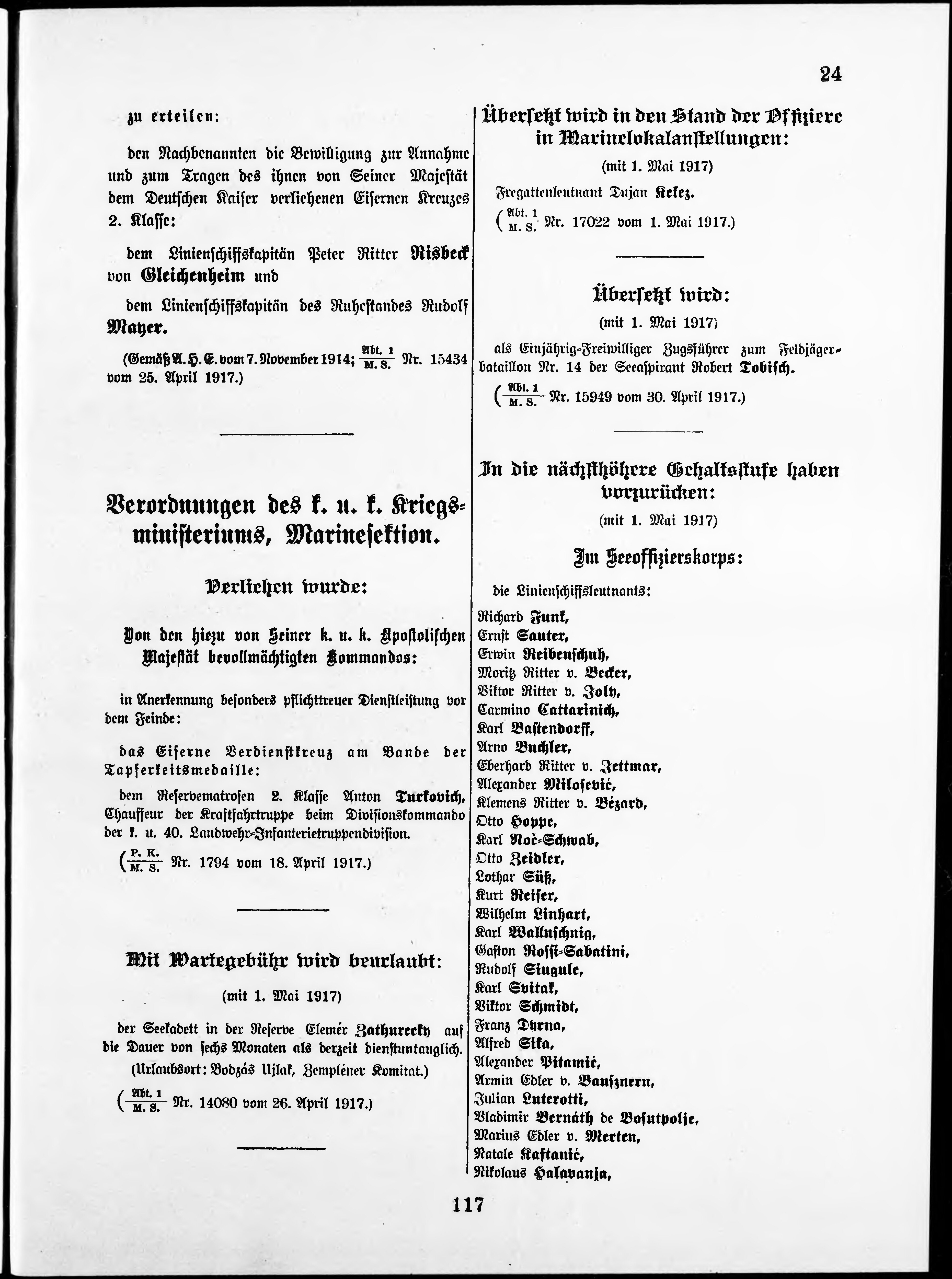 Personalvernungsblatt für die k.k. Kreigs-Marine