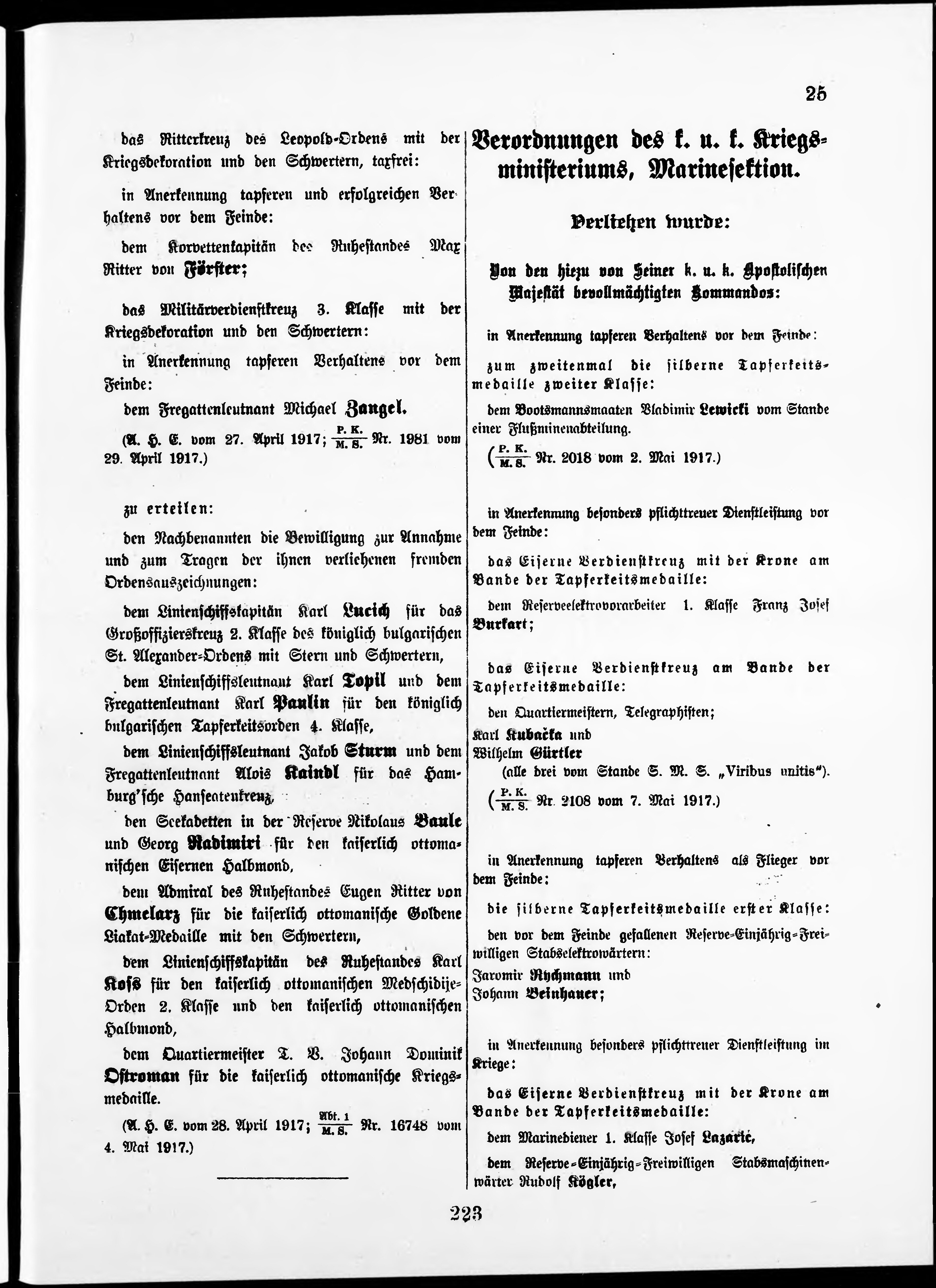 * Datum vydání výtisku: 12.5.1917 Číslo výtisku: 25 Poznámky k výtisku: nekonzistence číslování stran;