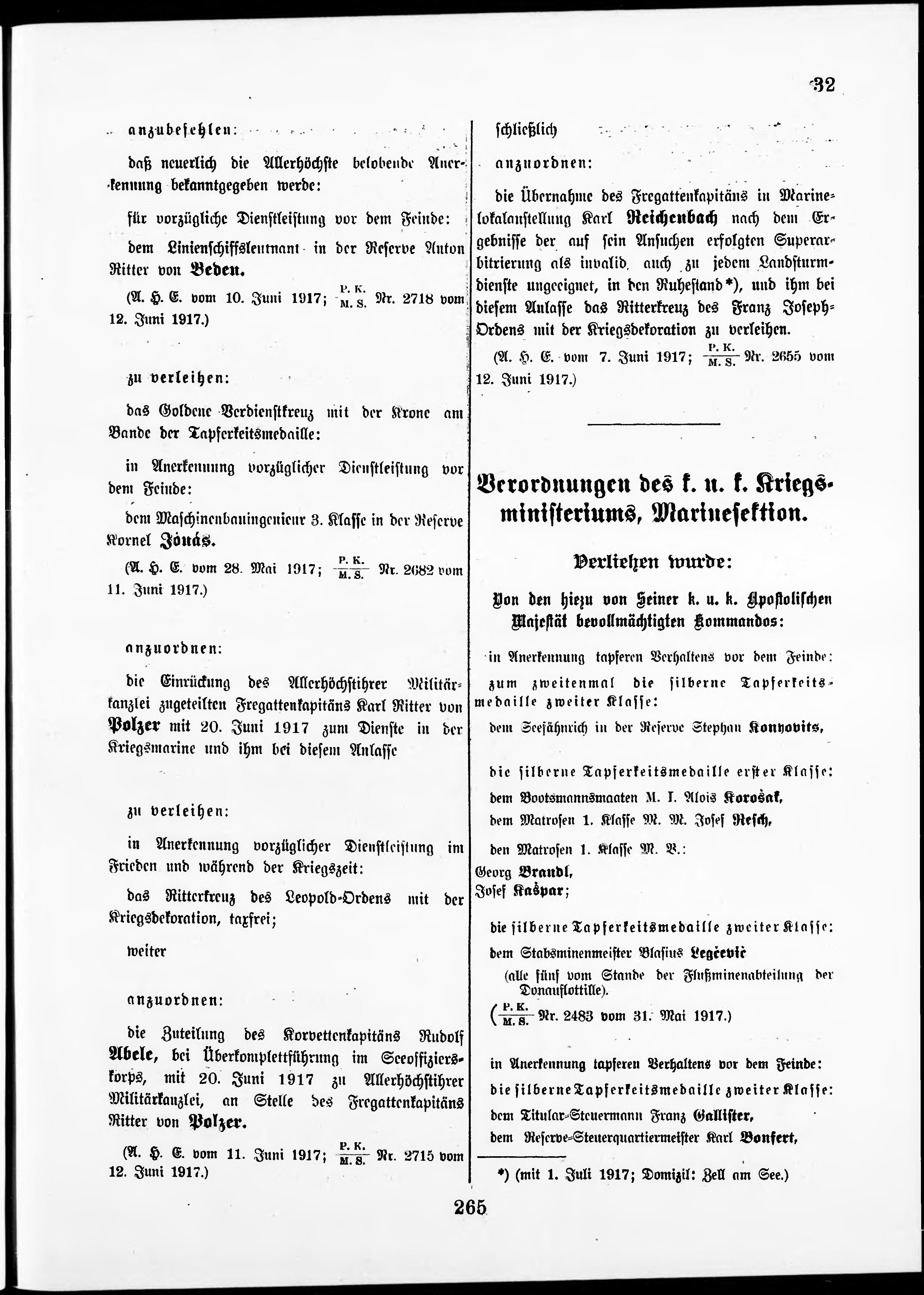 Personalvernungsblatt für die k.k. Kreigs-Marine