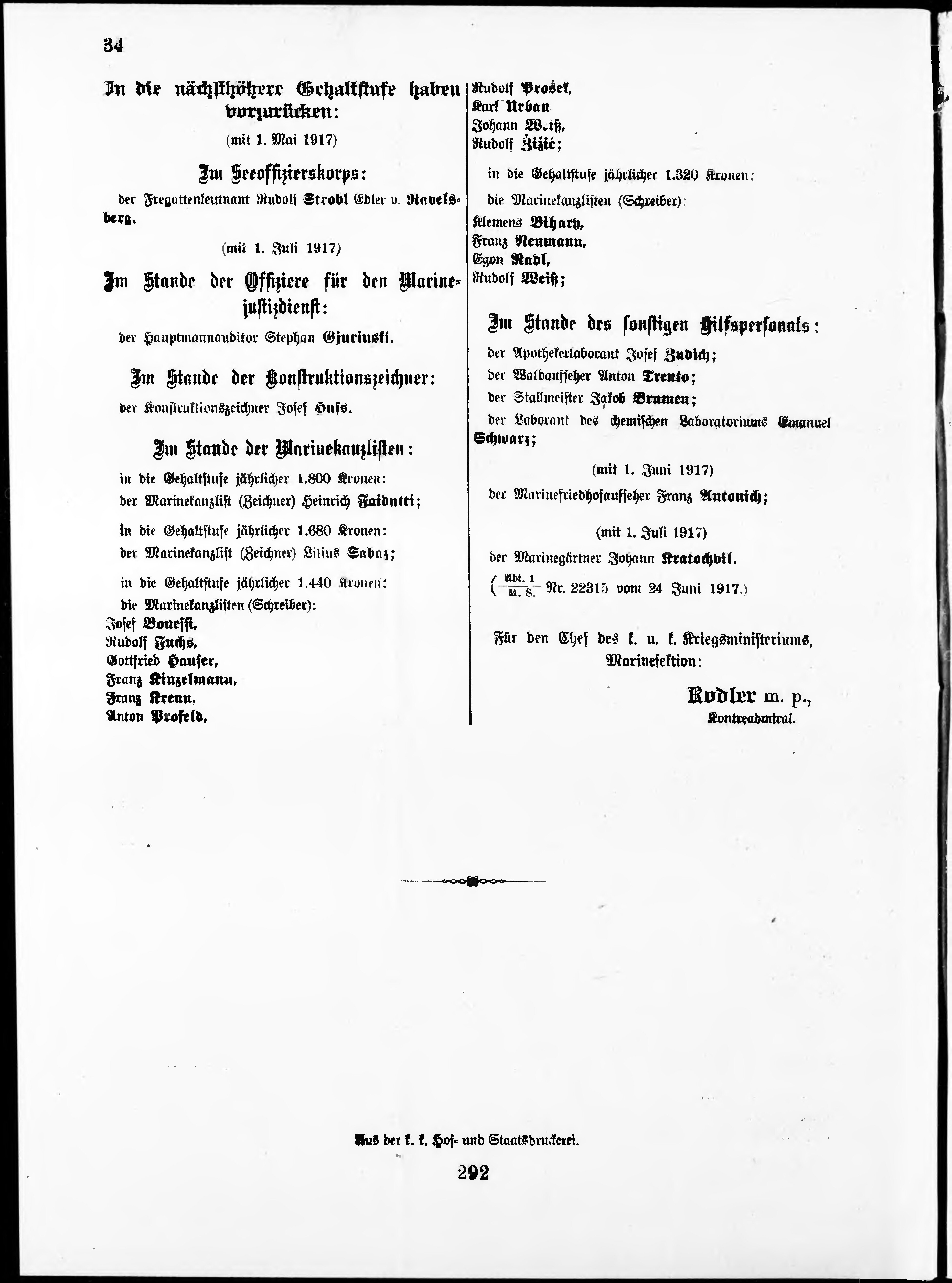 Personalvernungsblatt für die k.k. Kreigs-Marine