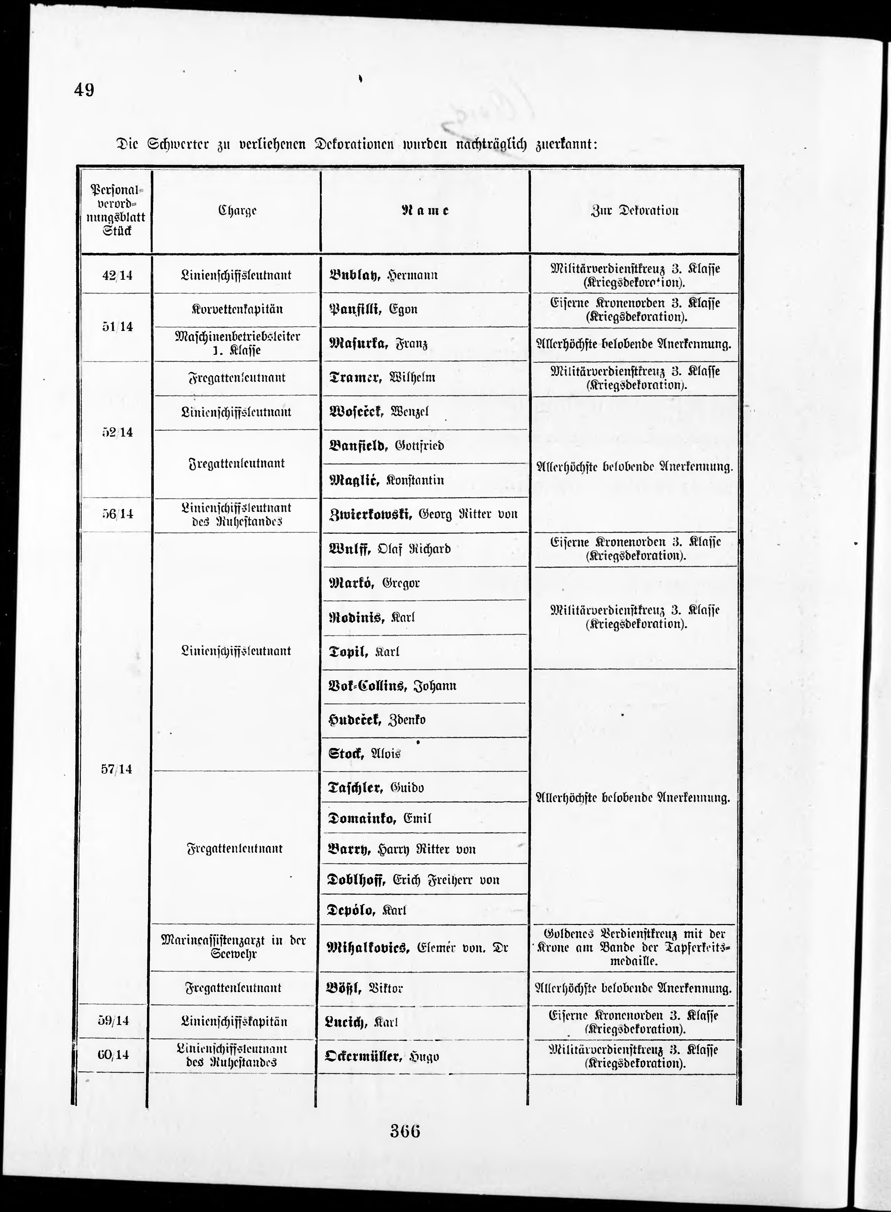 Personalvernungsblatt für die k.k. Kreigs-Marine