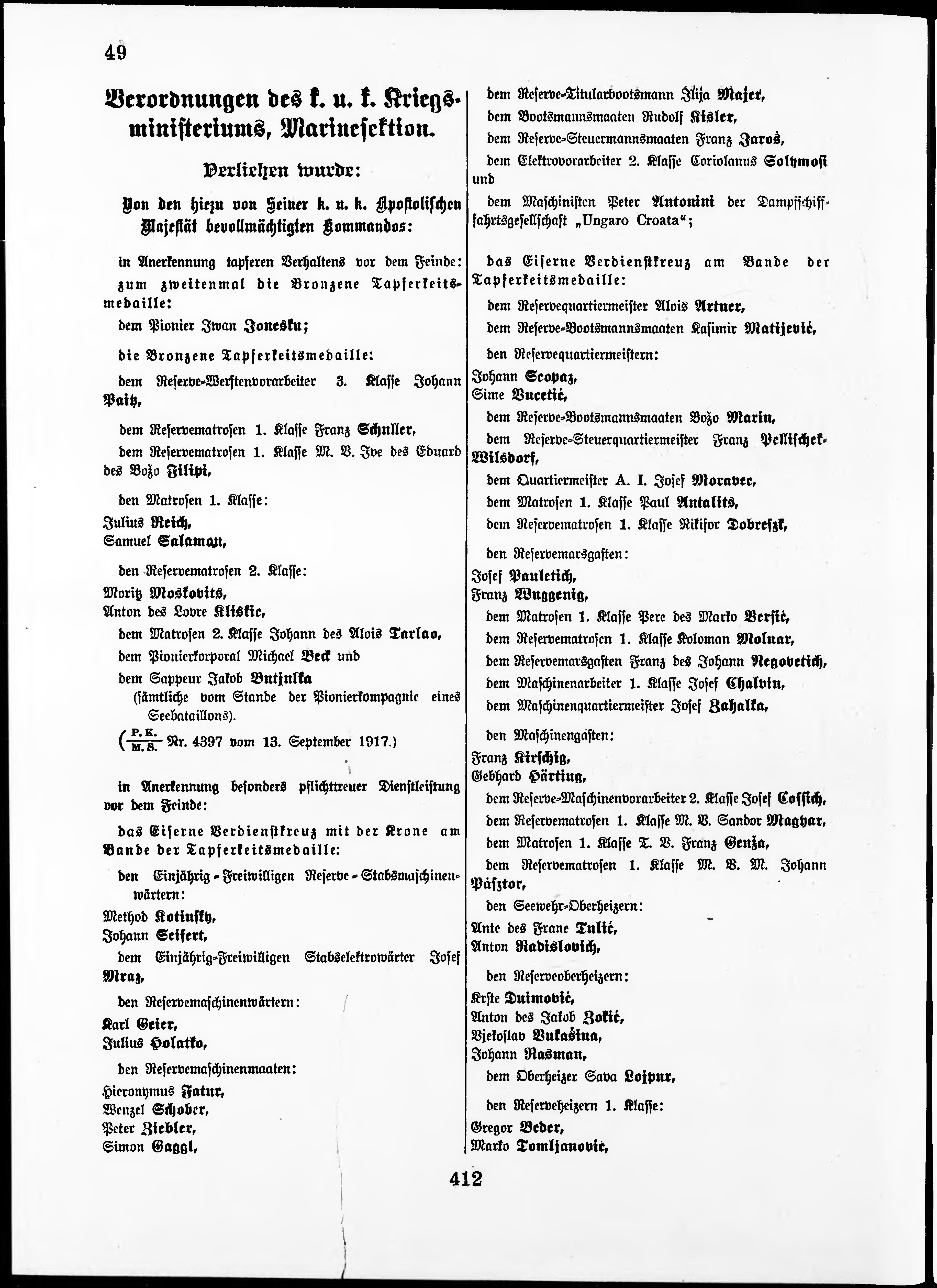 Personalvernungsblatt für die k.k. Kreigs-Marine
