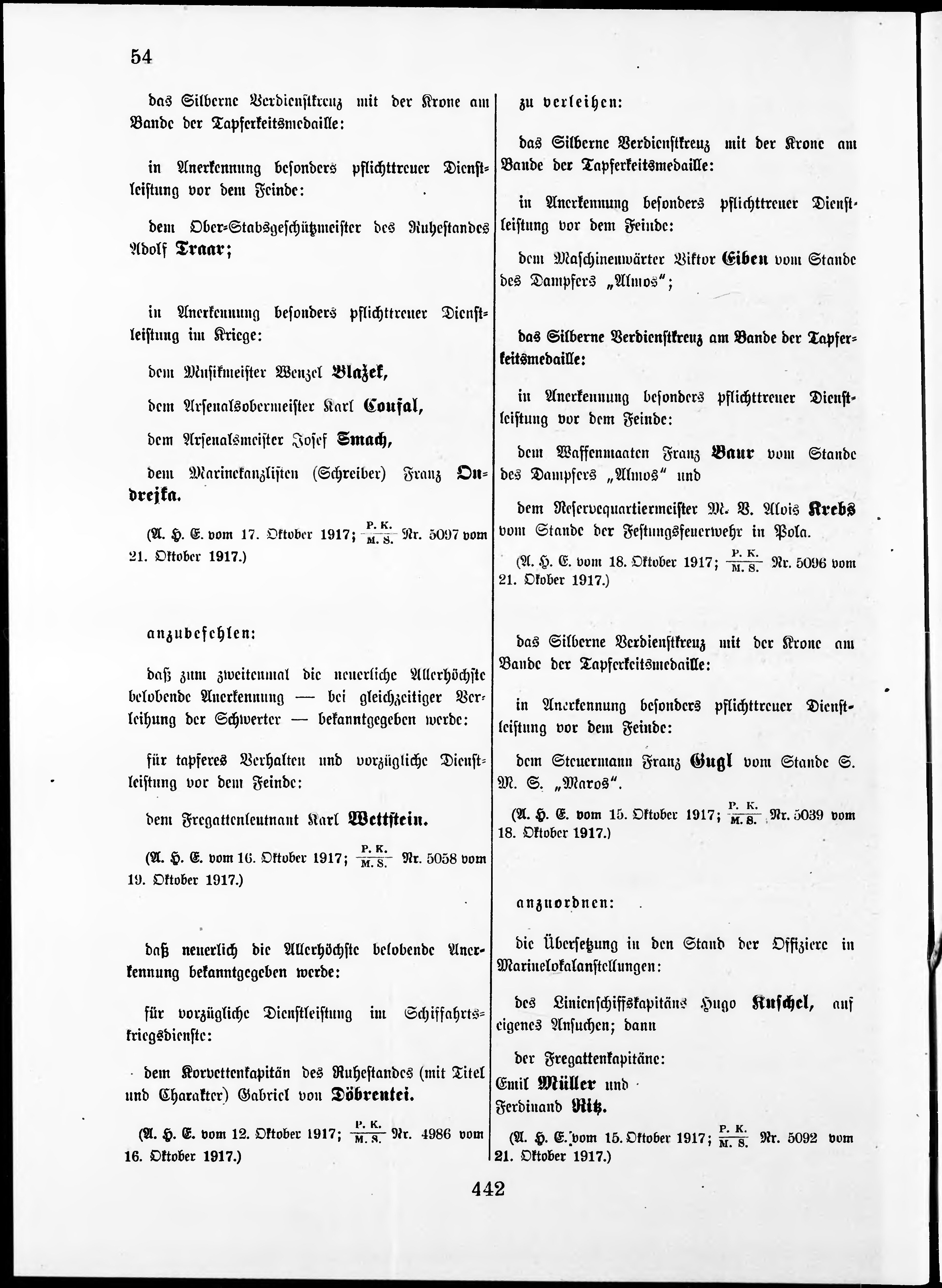 Personalvernungsblatt für die k.k. Kreigs-Marine