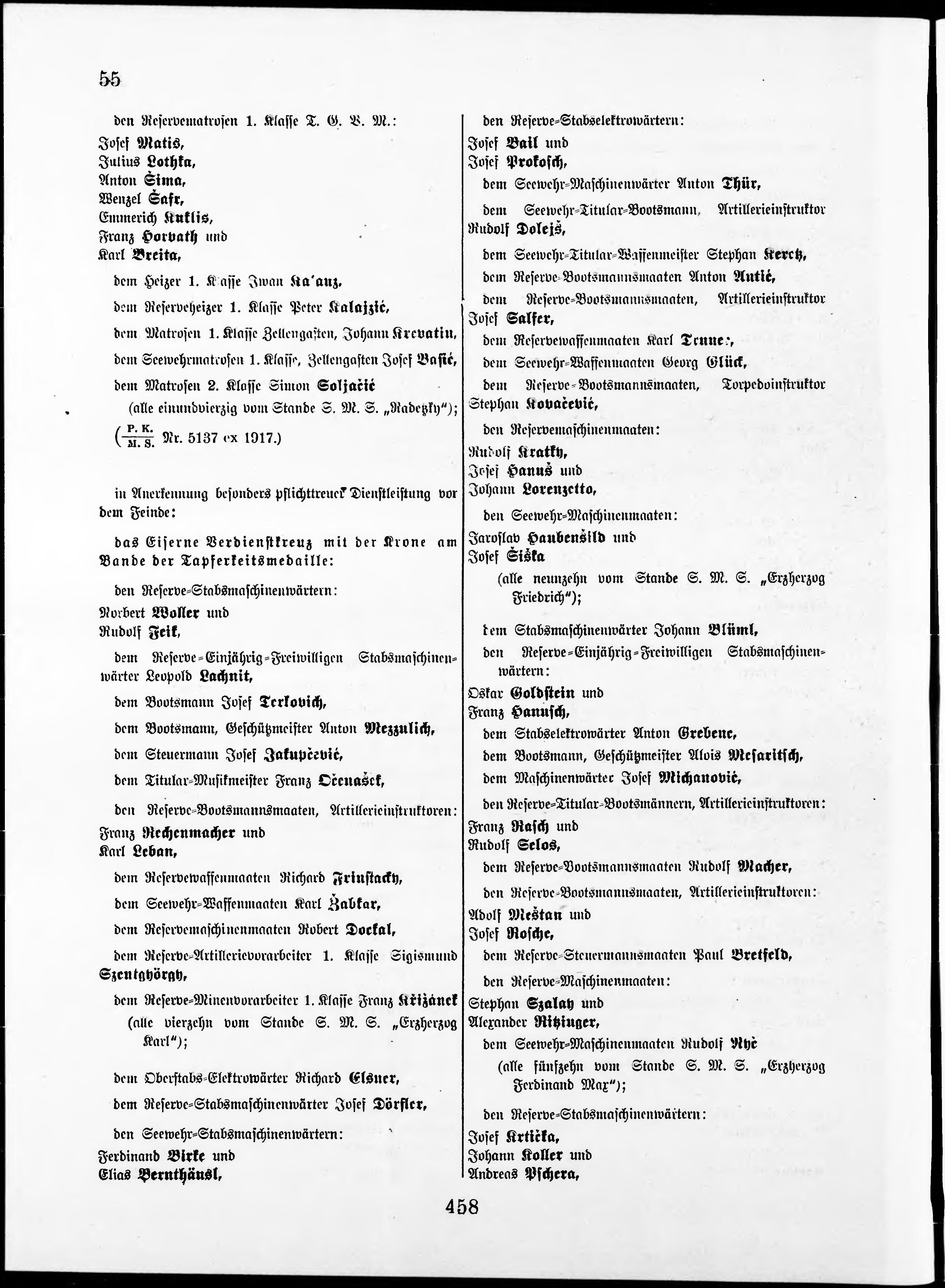 Personalvernungsblatt für die k.k. Kreigs-Marine