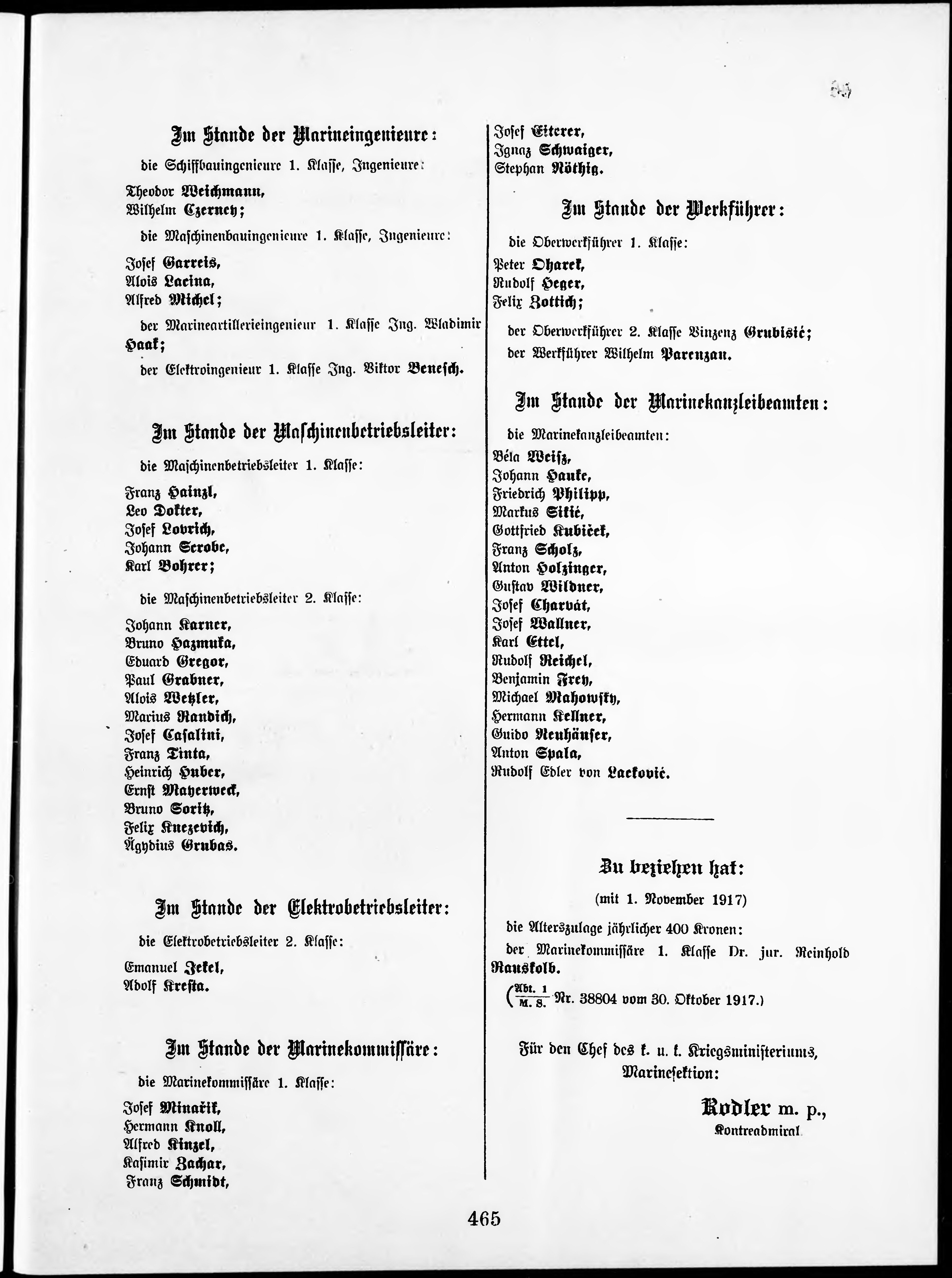 Personalvernungsblatt für die k.k. Kreigs-Marine