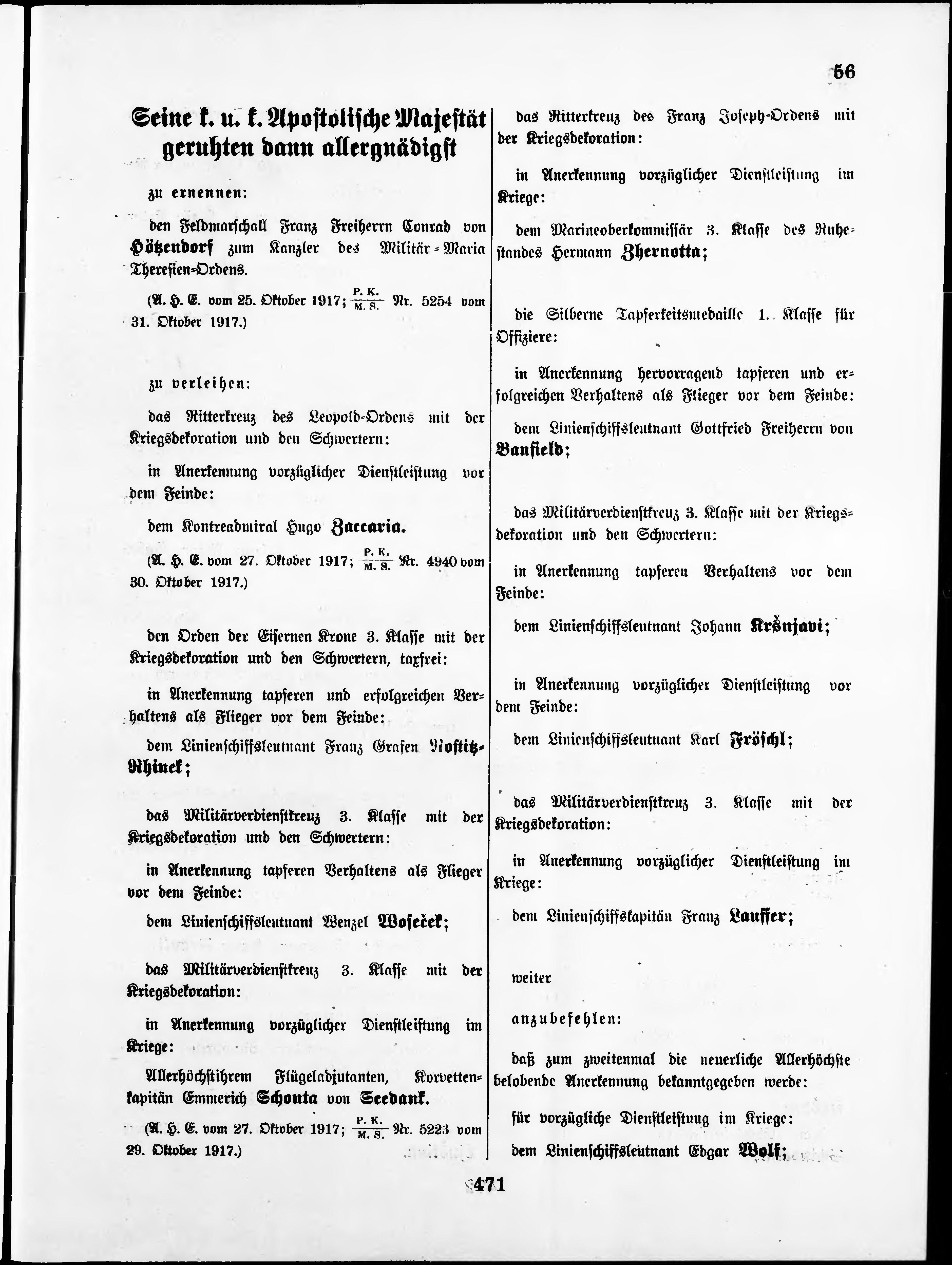 Personalvernungsblatt für die k.k. Kreigs-Marine