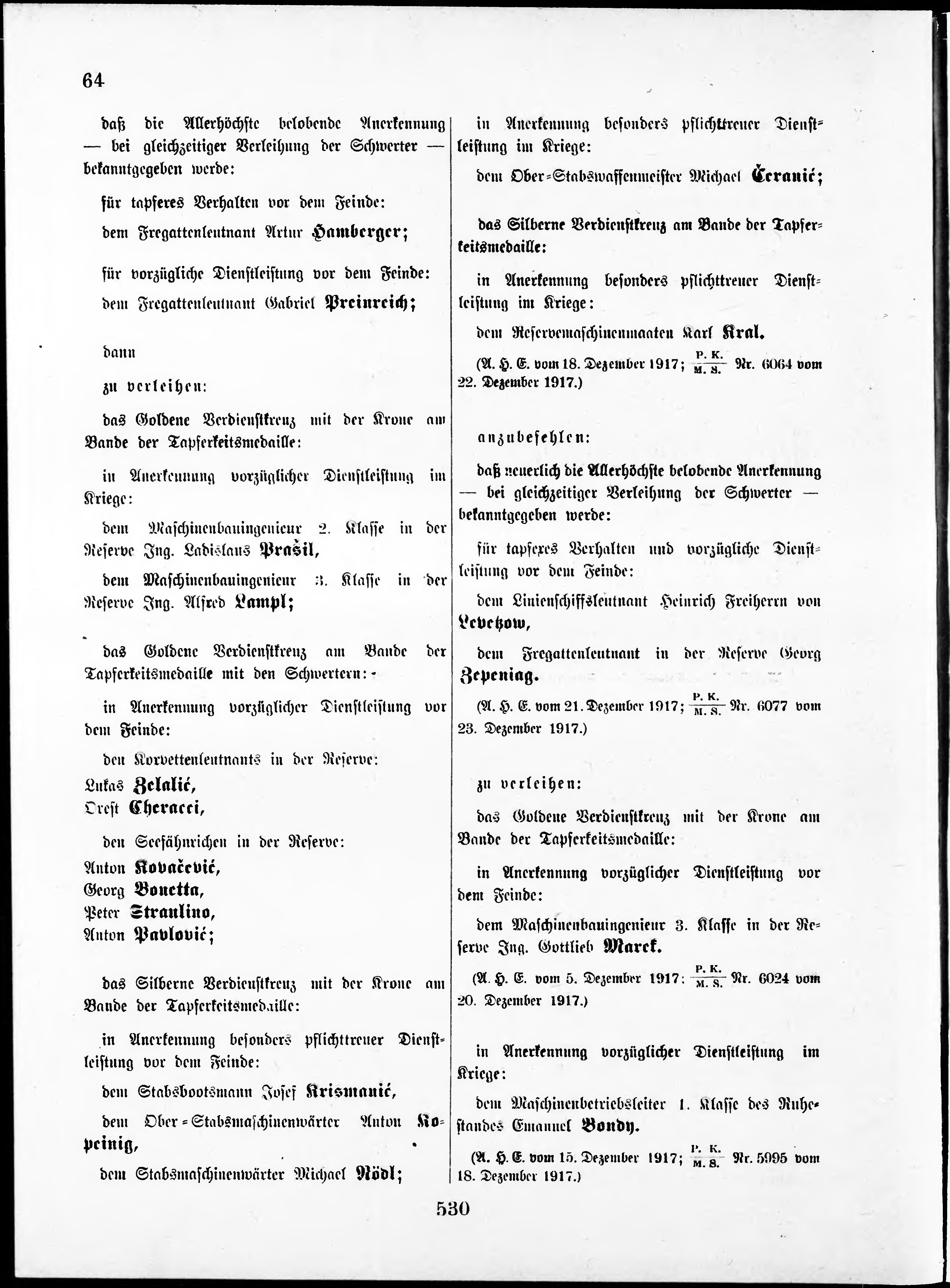 * Datum vydání výtisku: 29.12.1917 Číslo výtisku: 64