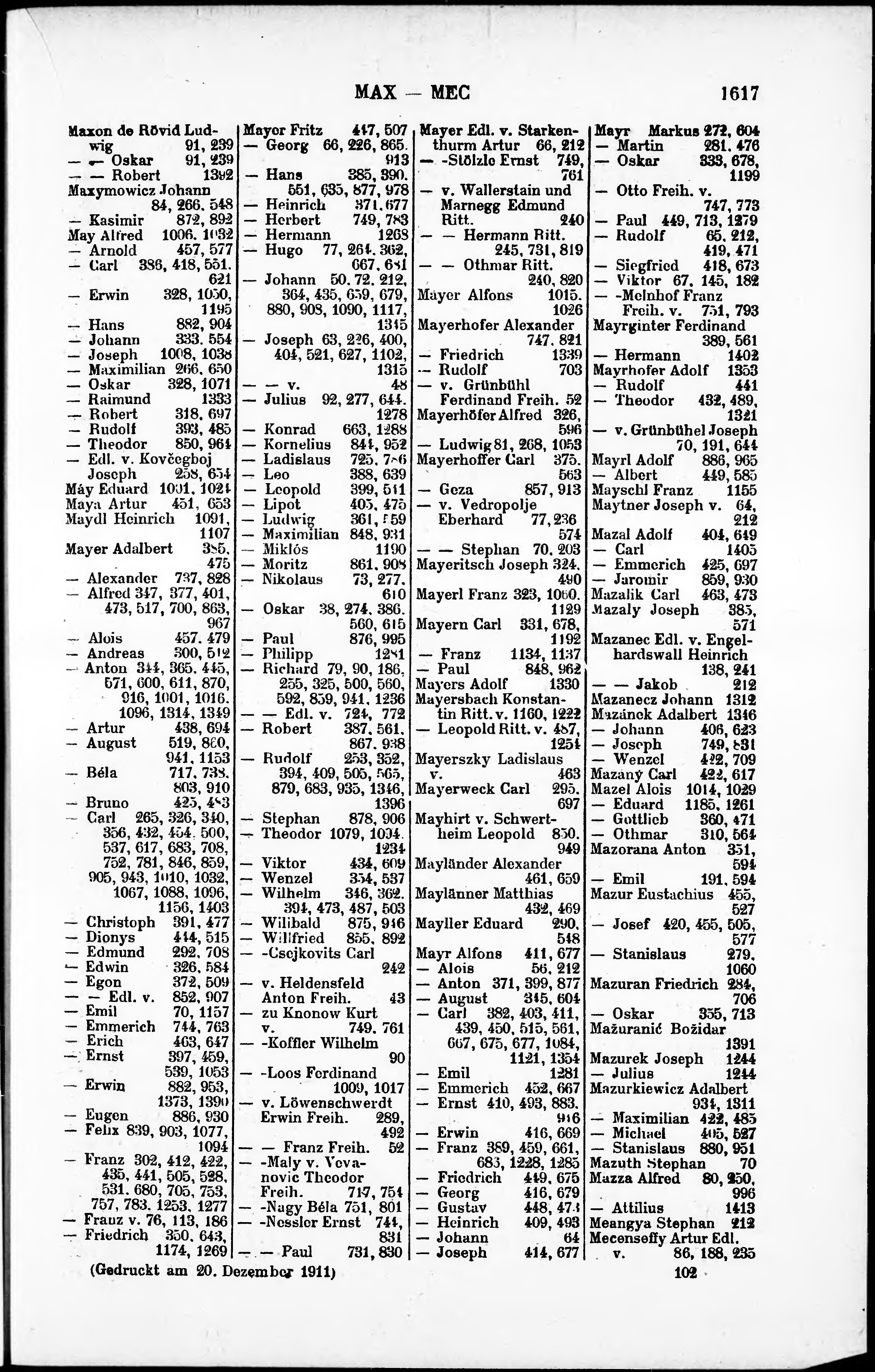 * Číslo stránky: 1617 Typ stránky: rejstřík