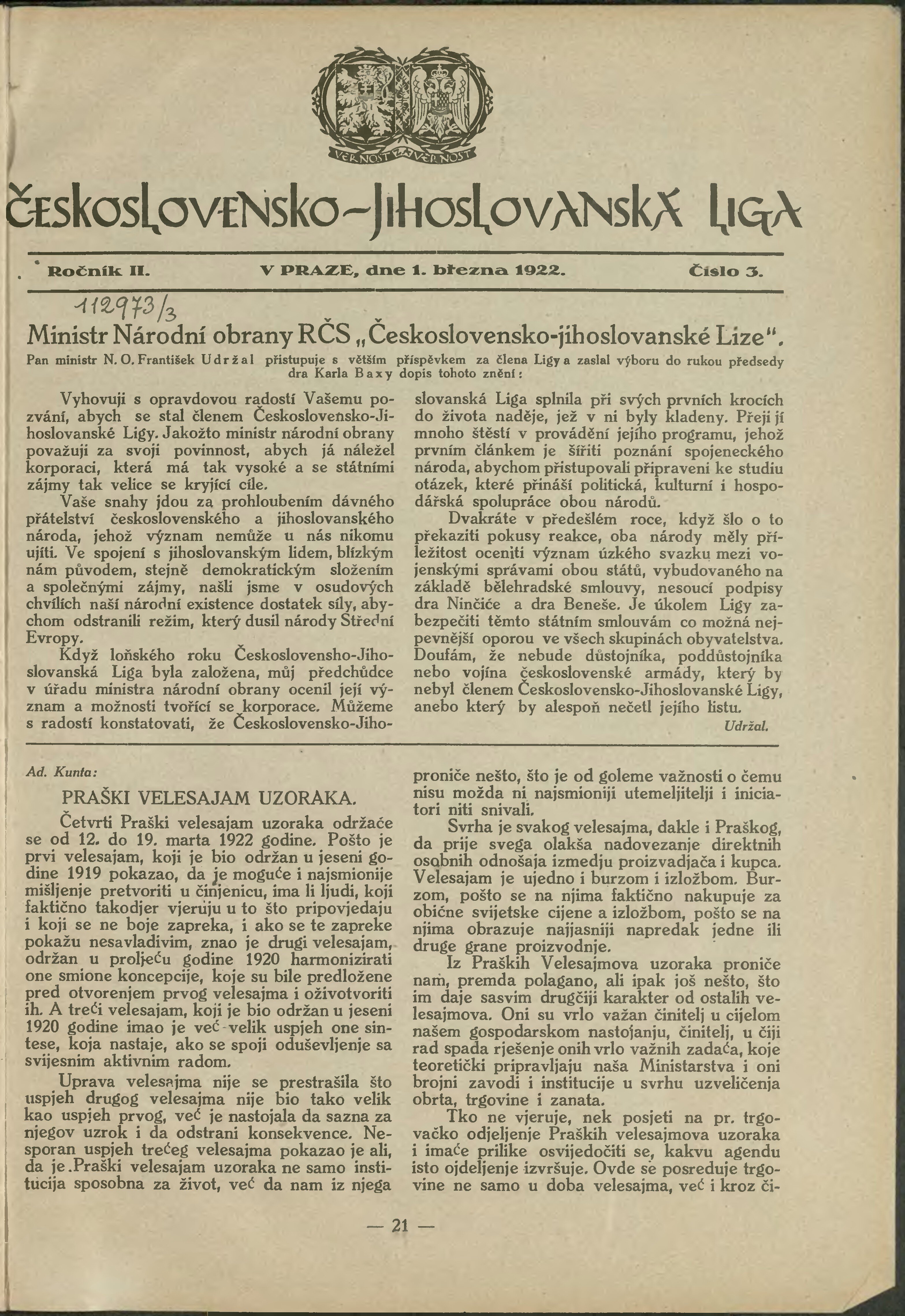* Datum vydání výtisku: 1.3.1922 Číslo výtisku: 3