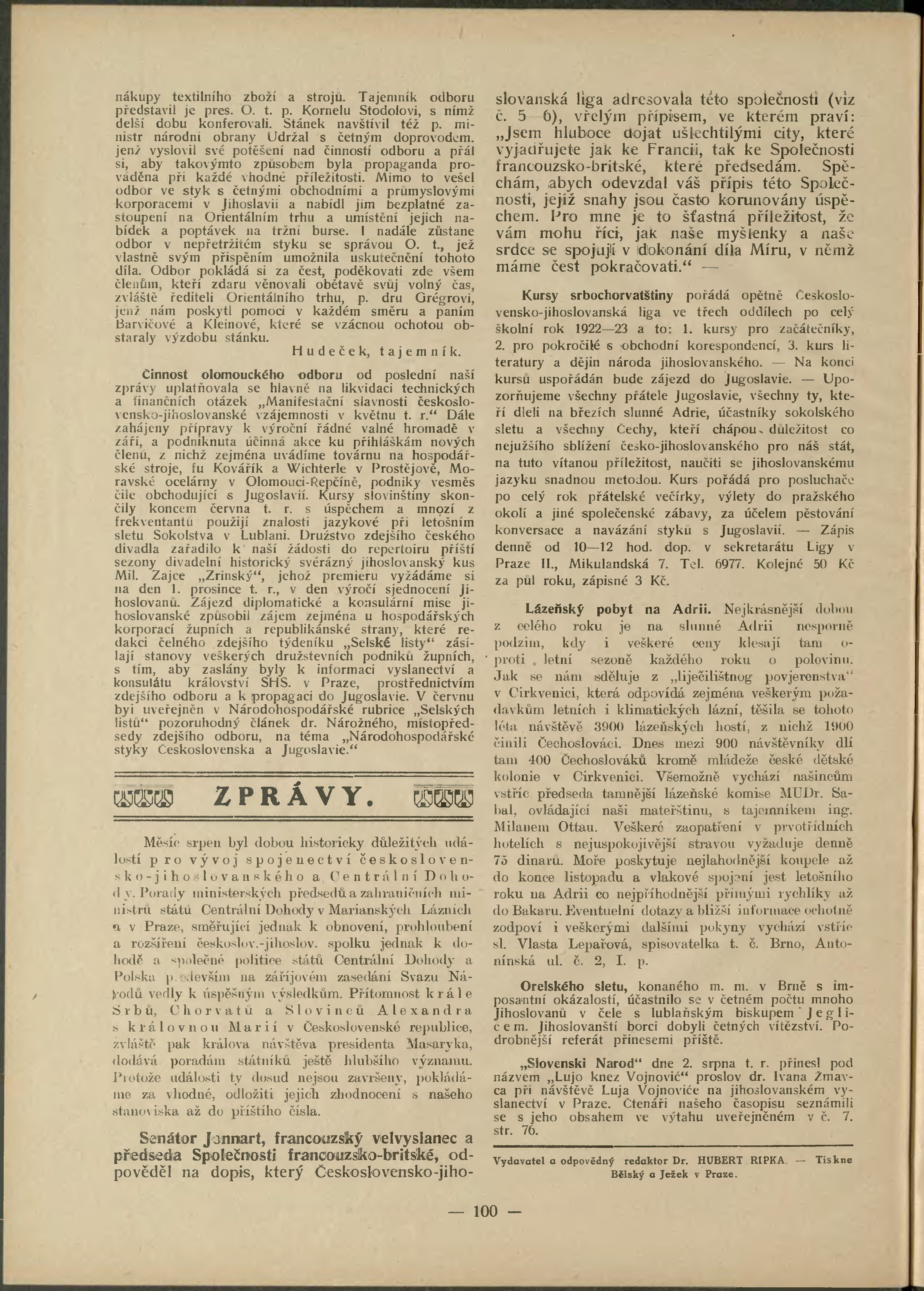 * Datum vydání výtisku: 1.9.1922 Číslo výtisku: 9