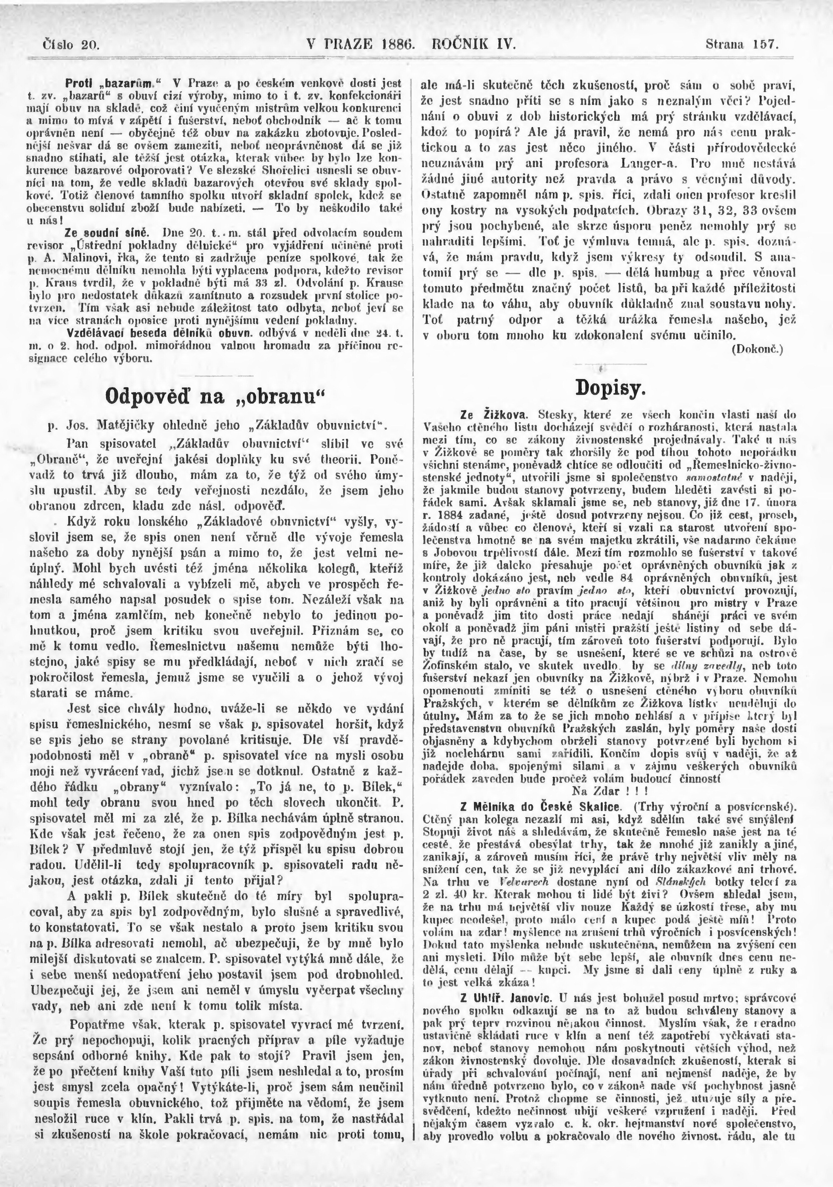 * Datum vydání výtisku: 24.10.1886 Číslo výtisku: 20