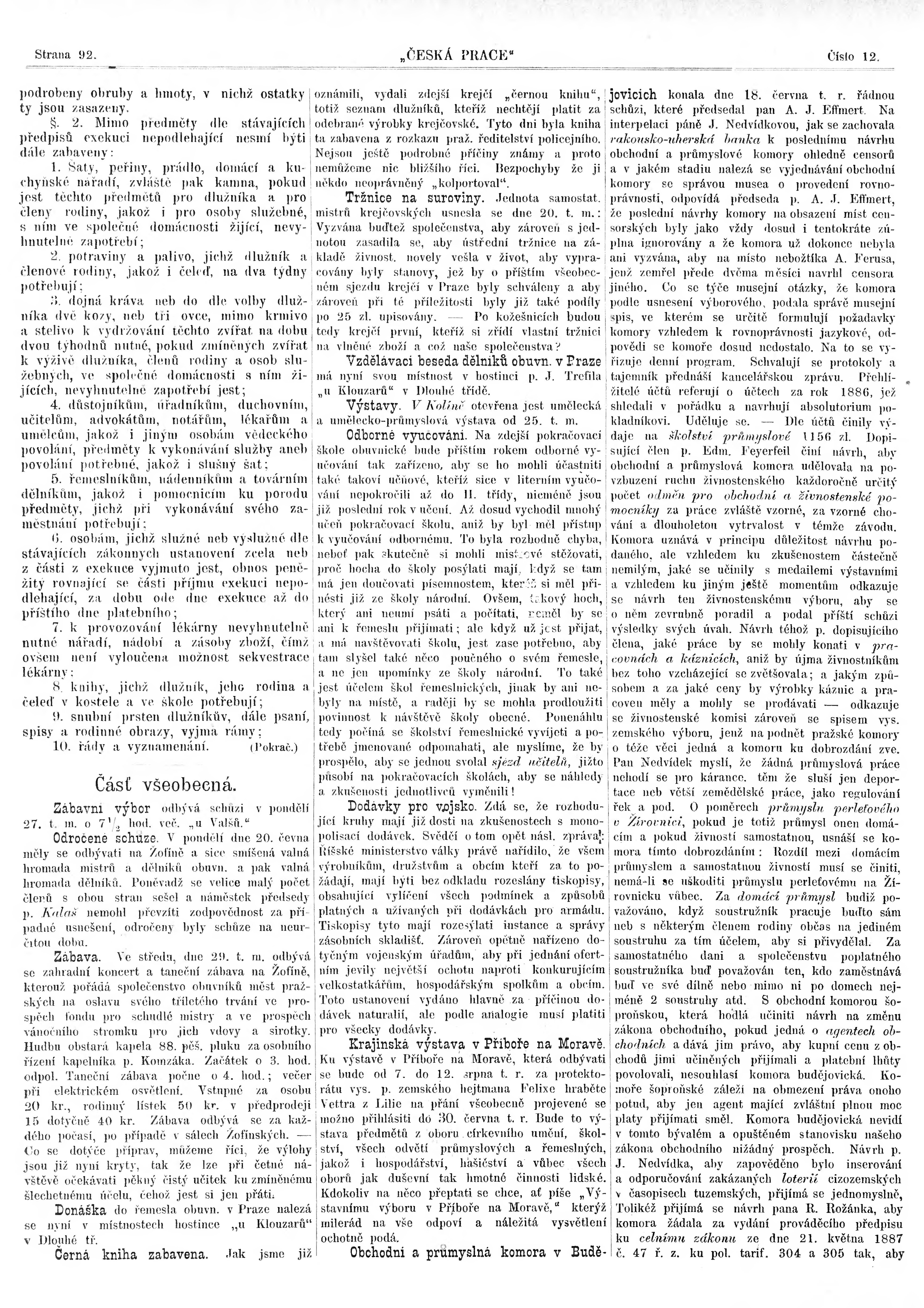 * Datum vydání výtisku: 26.6.1887 Číslo výtisku: 12
