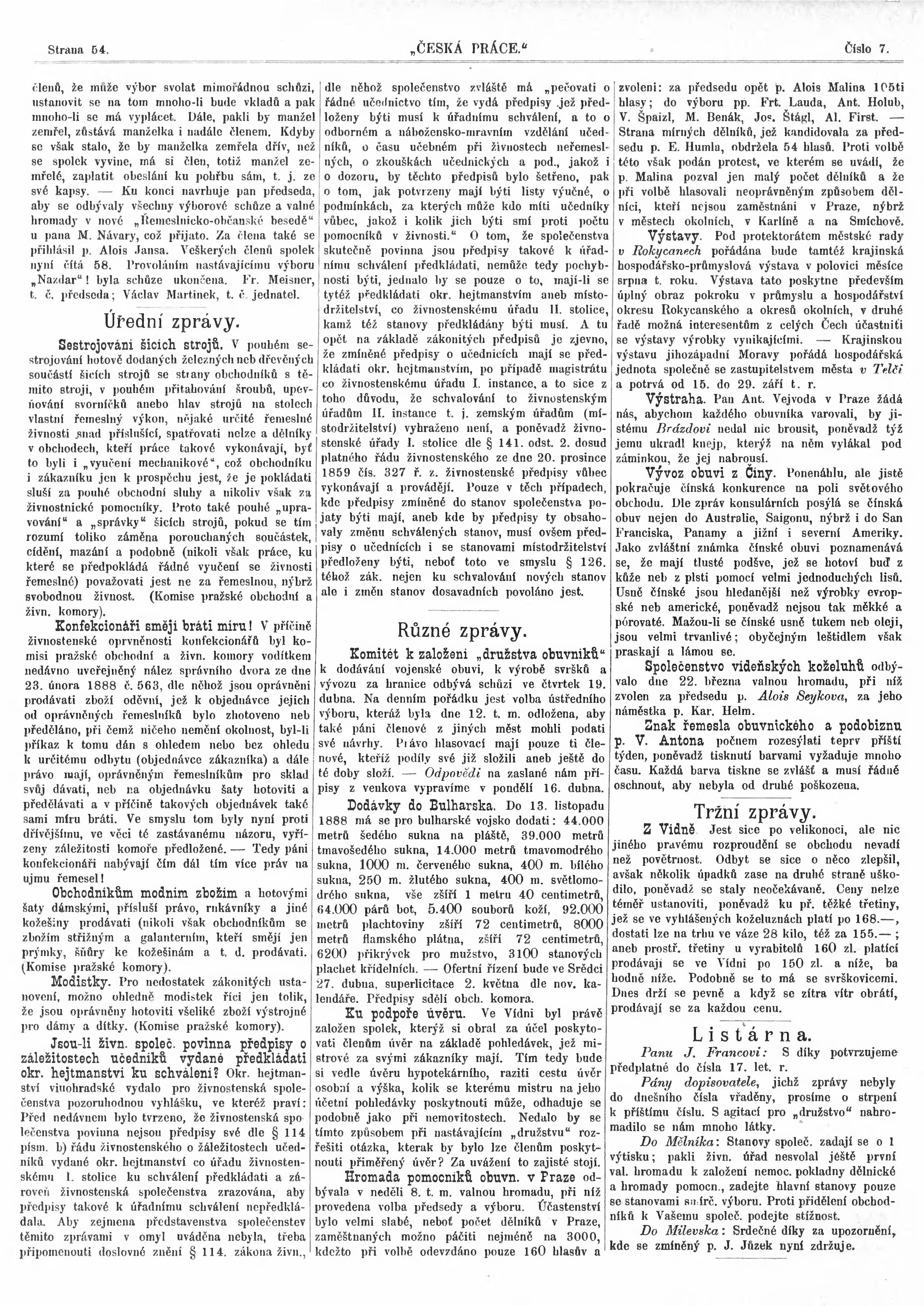 * Datum vydání výtisku: 15.4.1888 Číslo výtisku: 7