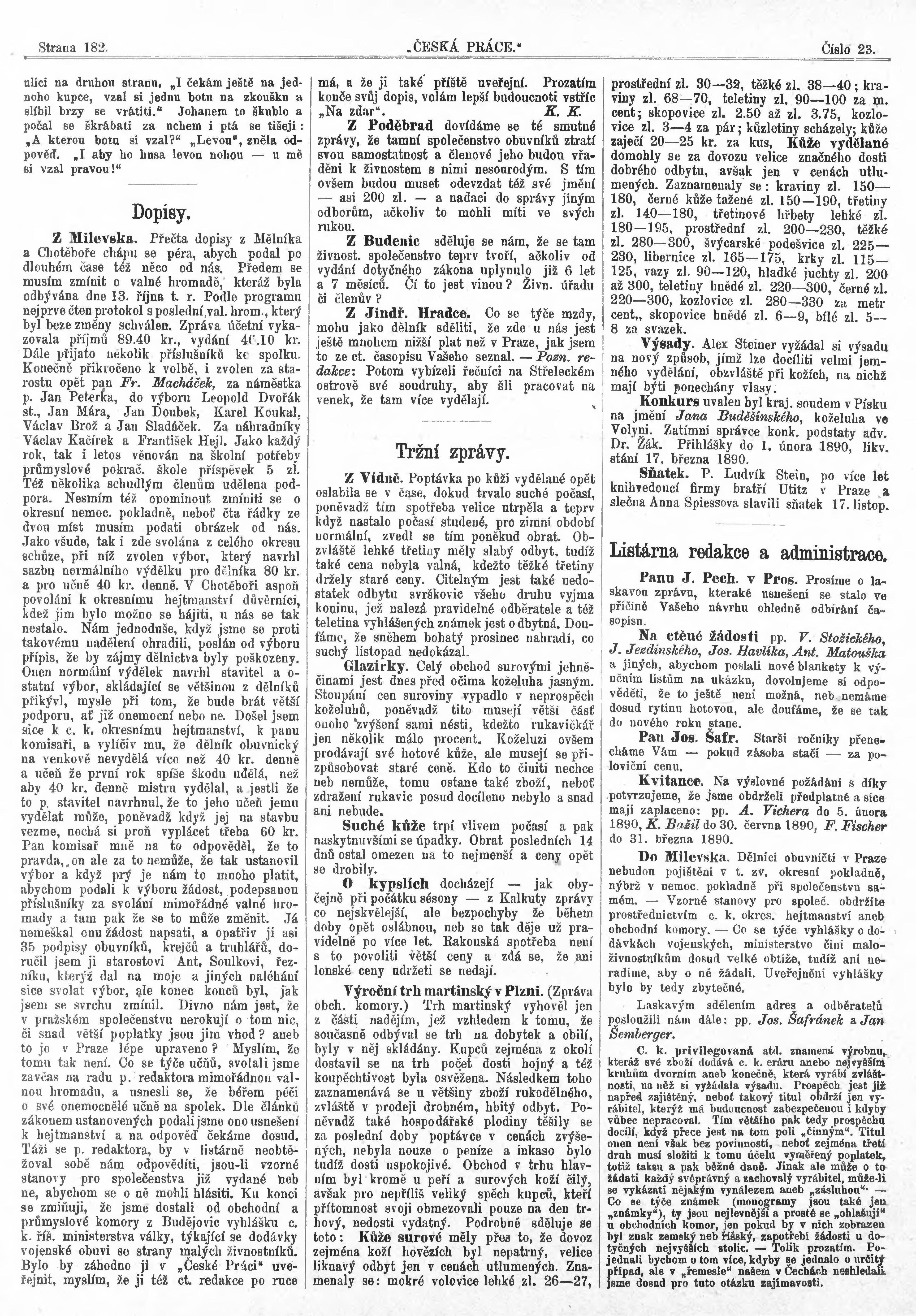 * Datum vydání výtisku: 8.12.1889 Číslo výtisku: 23