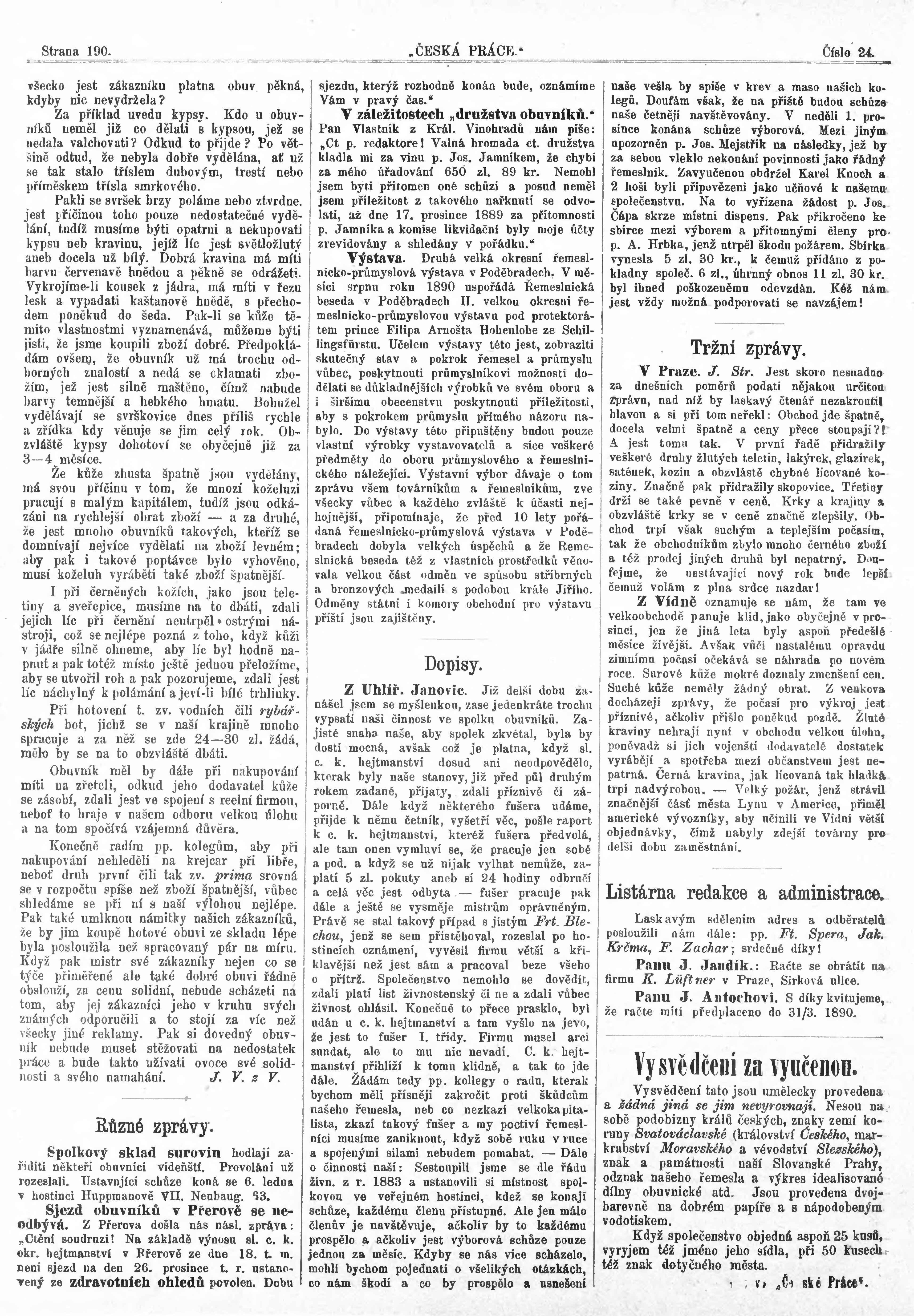 * Datum vydání výtisku: 22.12.1889 Číslo výtisku: 24