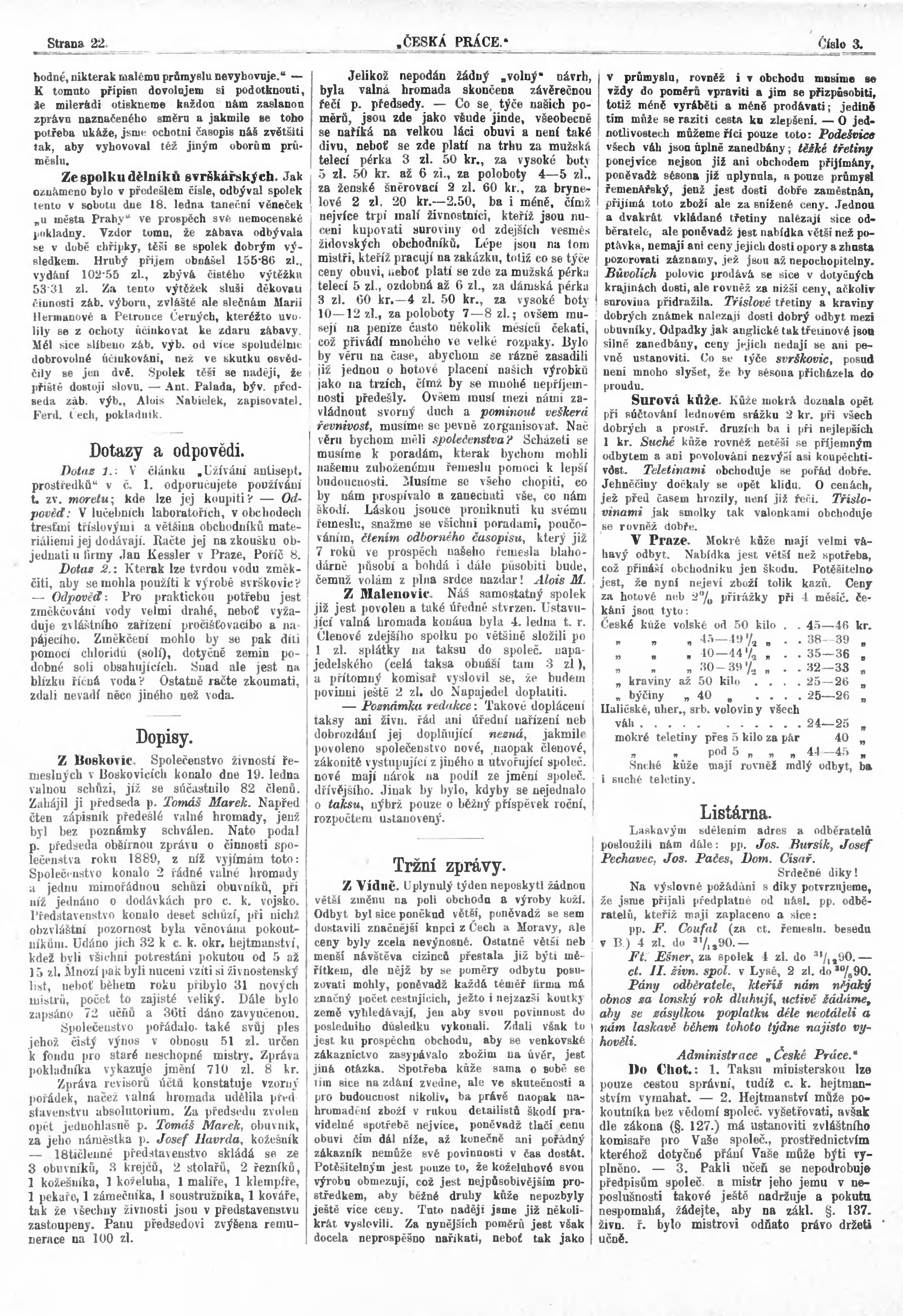 * Datum vydání výtisku: 9.2.1890 Číslo výtisku: 3