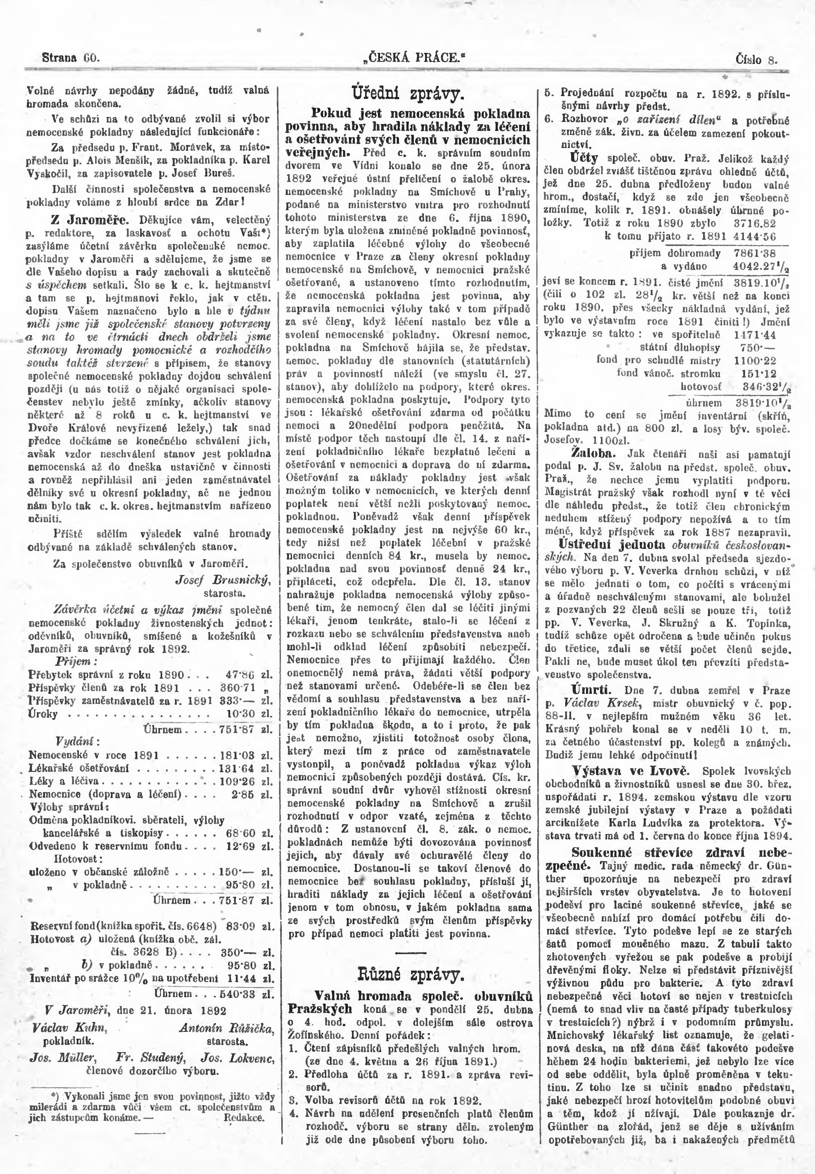 * Datum vydání výtisku: 16.4.1892 Číslo výtisku: 8