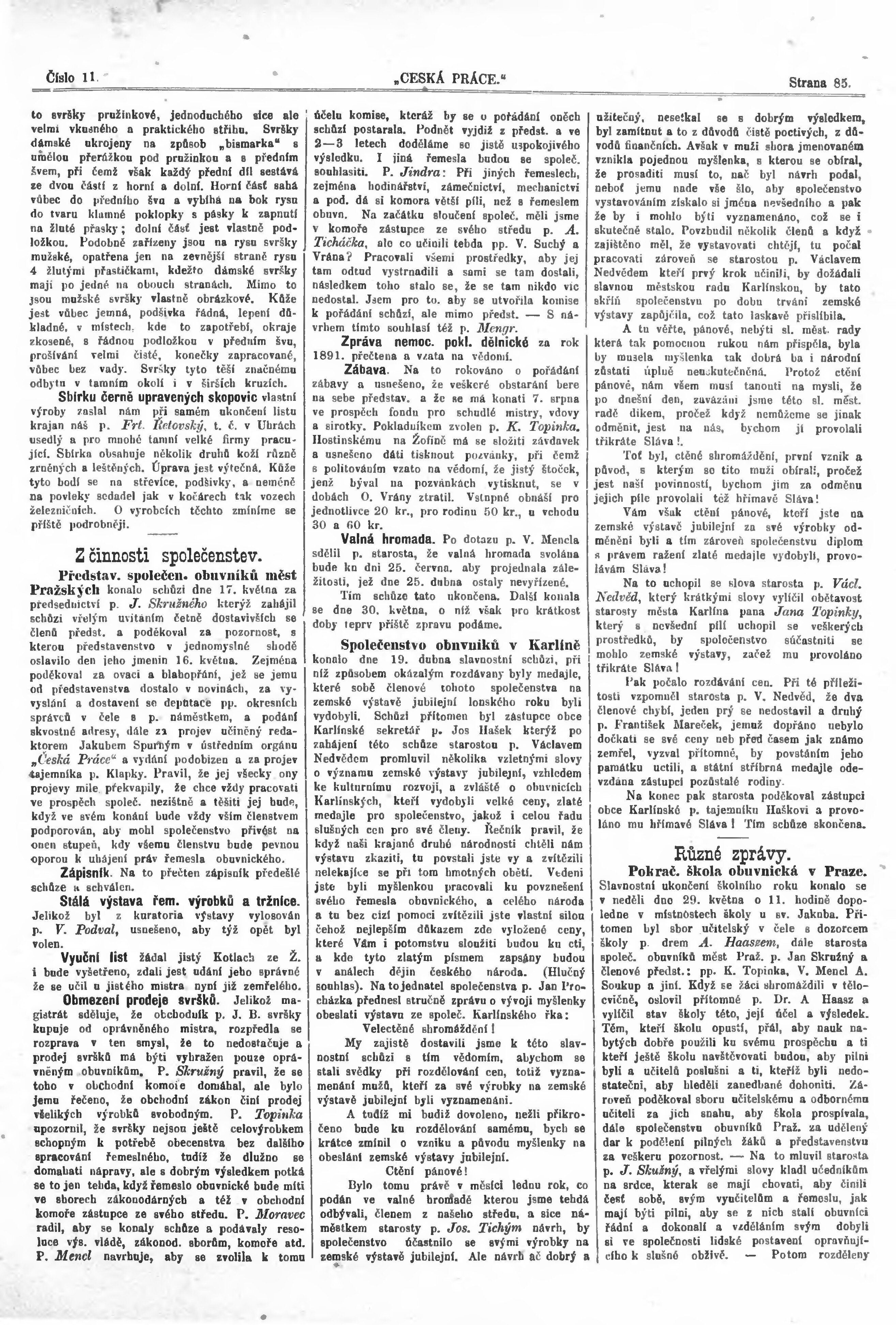 * Datum vydání výtisku: 1.6.1892 Číslo výtisku: 11