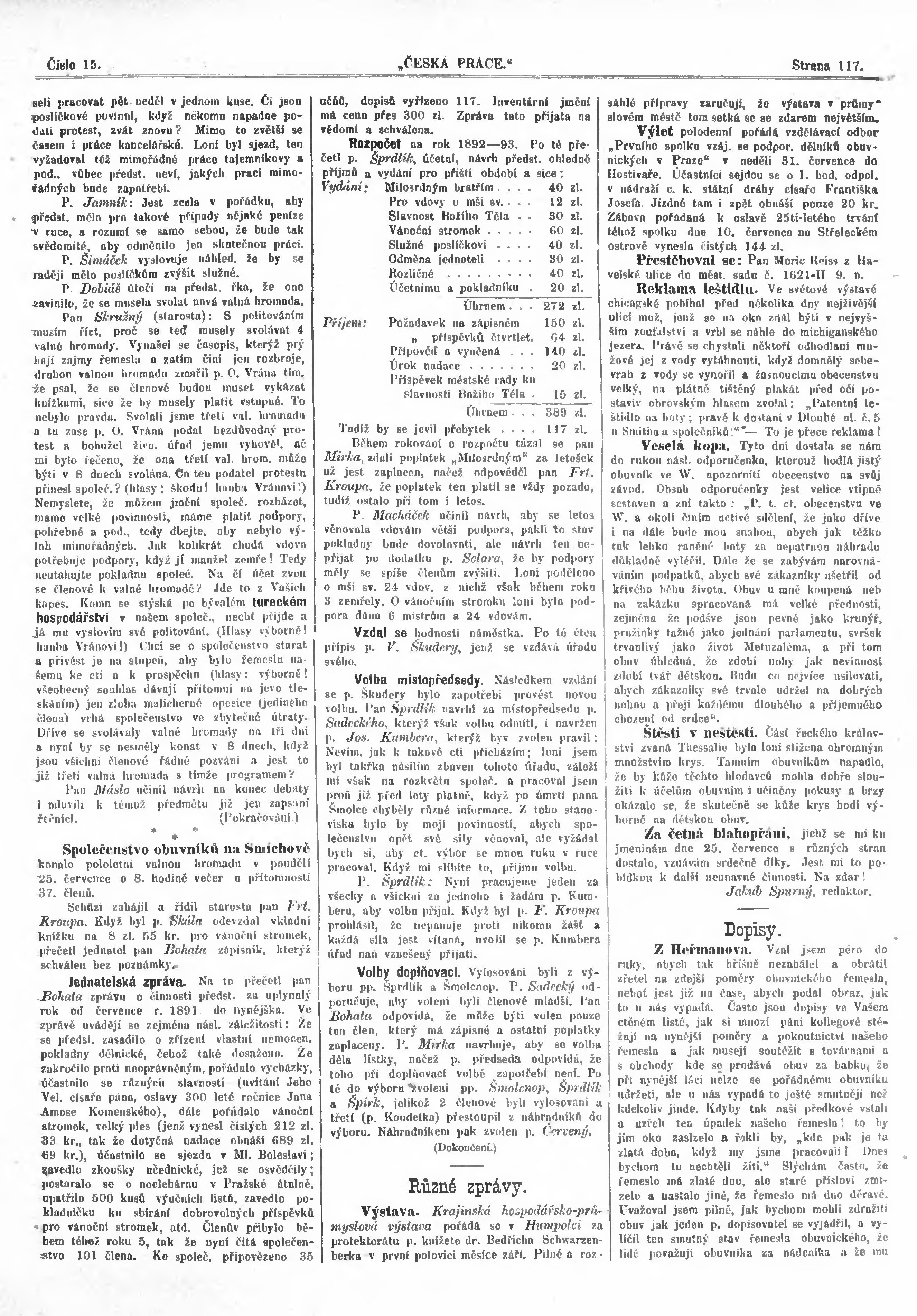 * Datum vydání výtisku: 1.8.1892 Číslo výtisku: 15